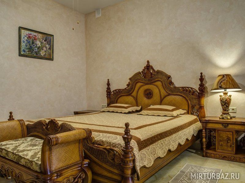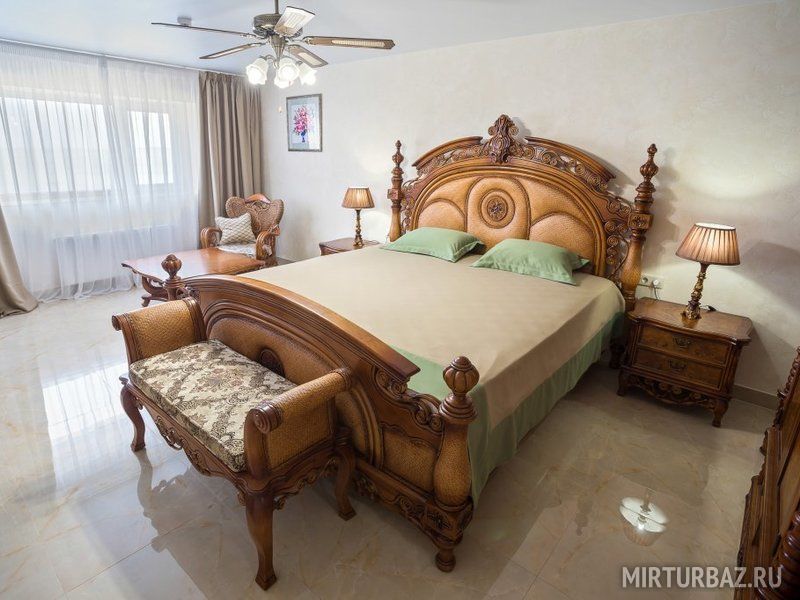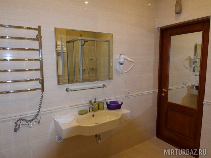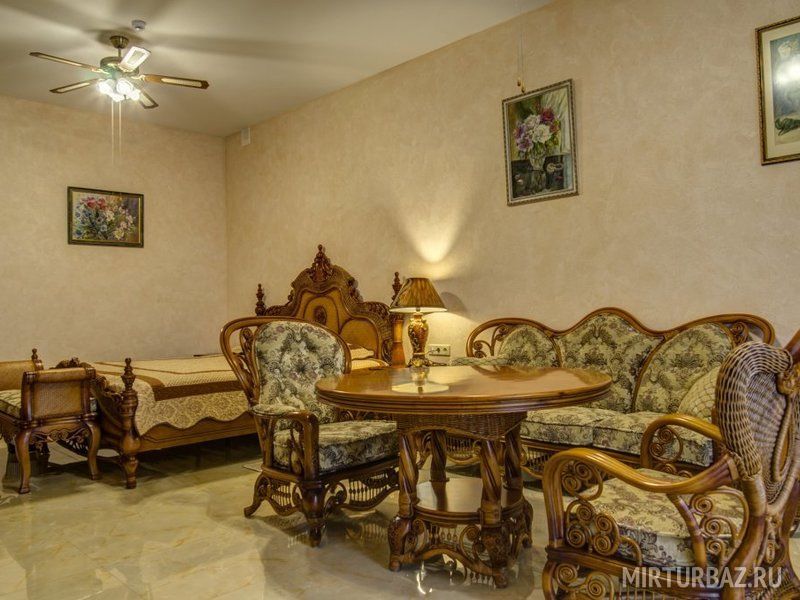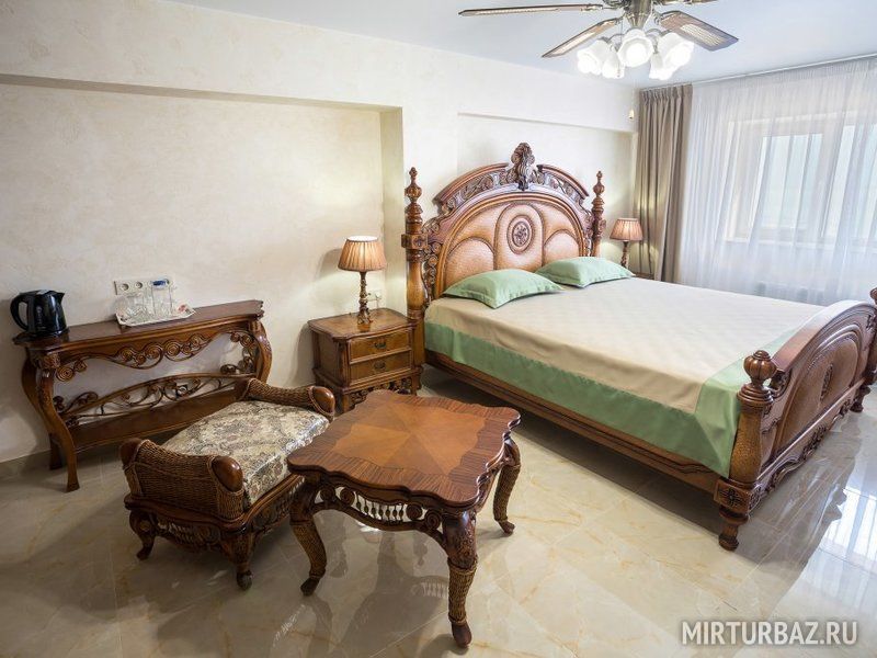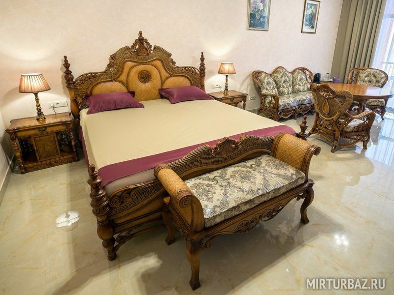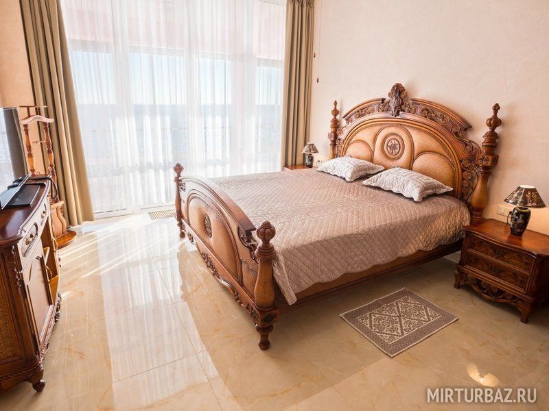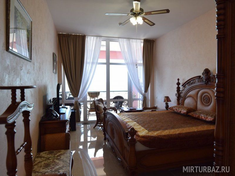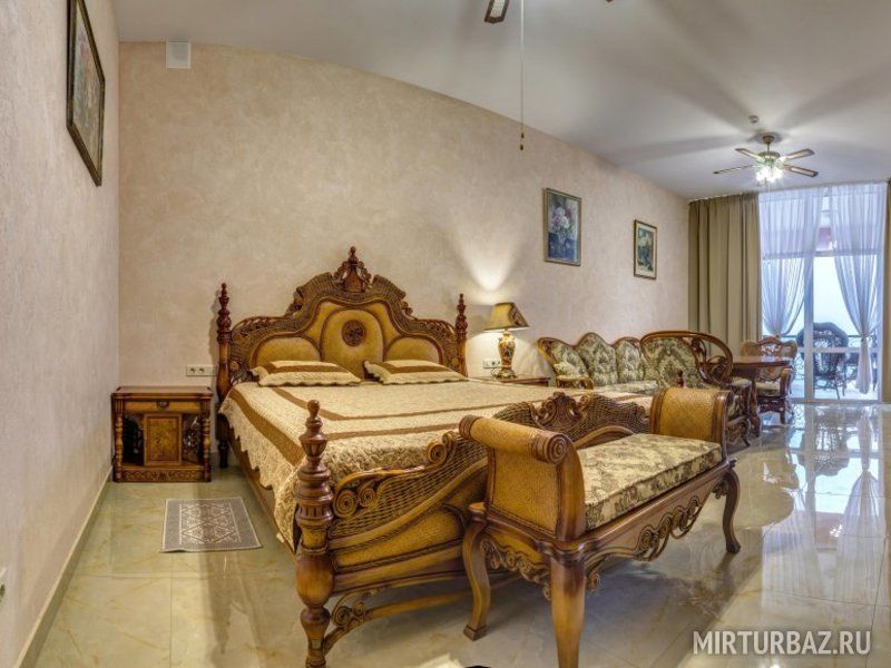 Эксклюзивная мебель и сантехника от ведущих производителей удивит тысячами невидимых глазу деталей, завершая художественный облик номера легкостью, красотой и функциональностью. В номере современная техника, спутниковое телевидение и оптоволоконный интернет. Оснащен выходом на веранду с ротанговой мебелью, откуда можно насладиться видом на побережье Черного моря.