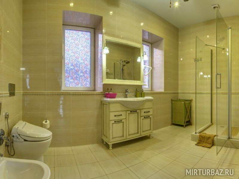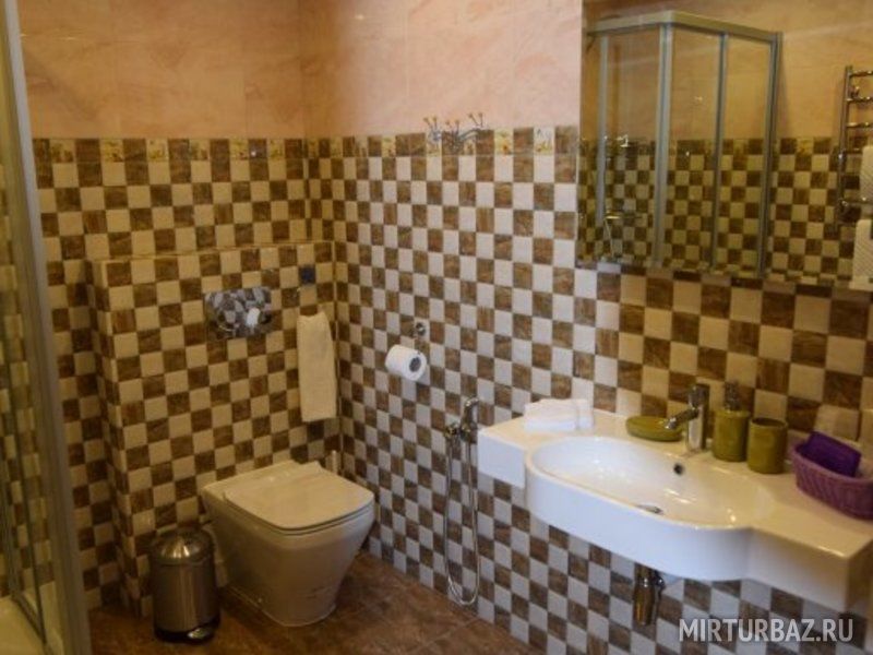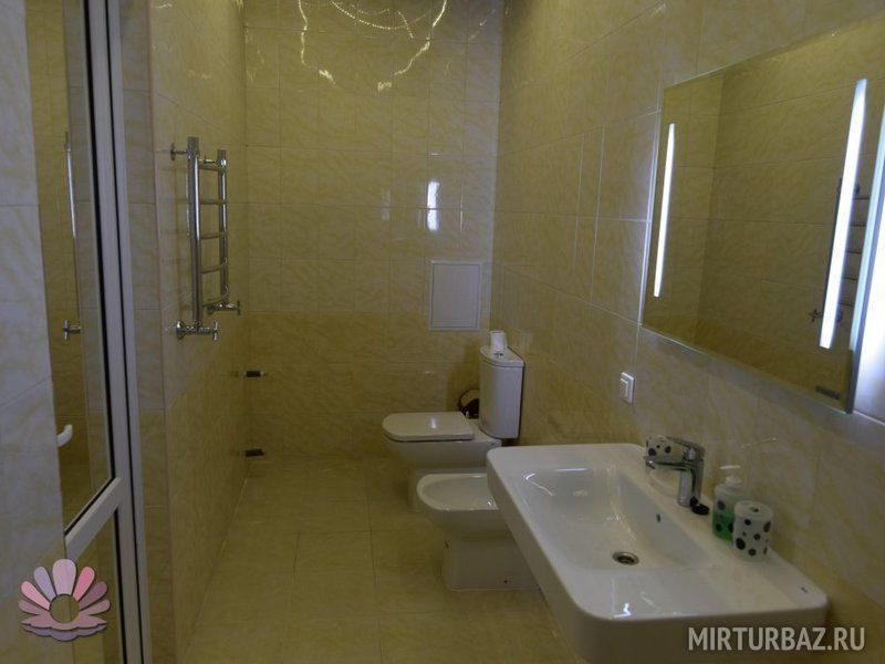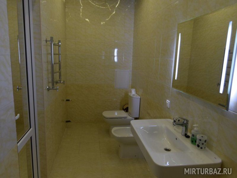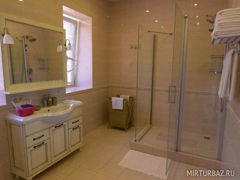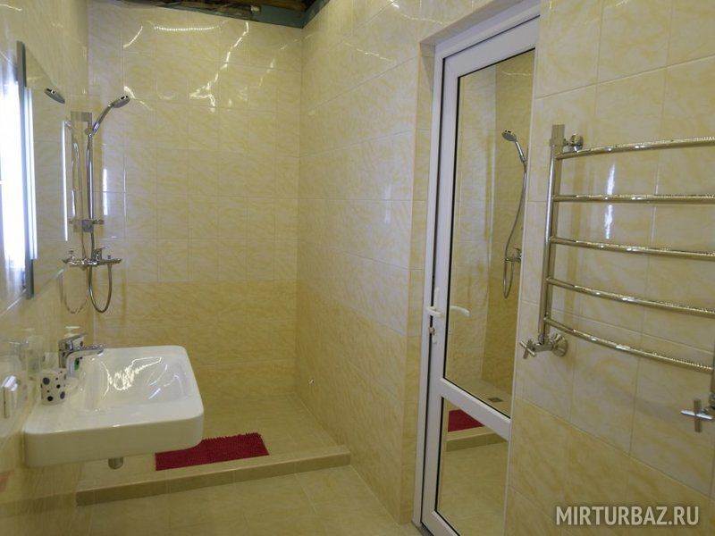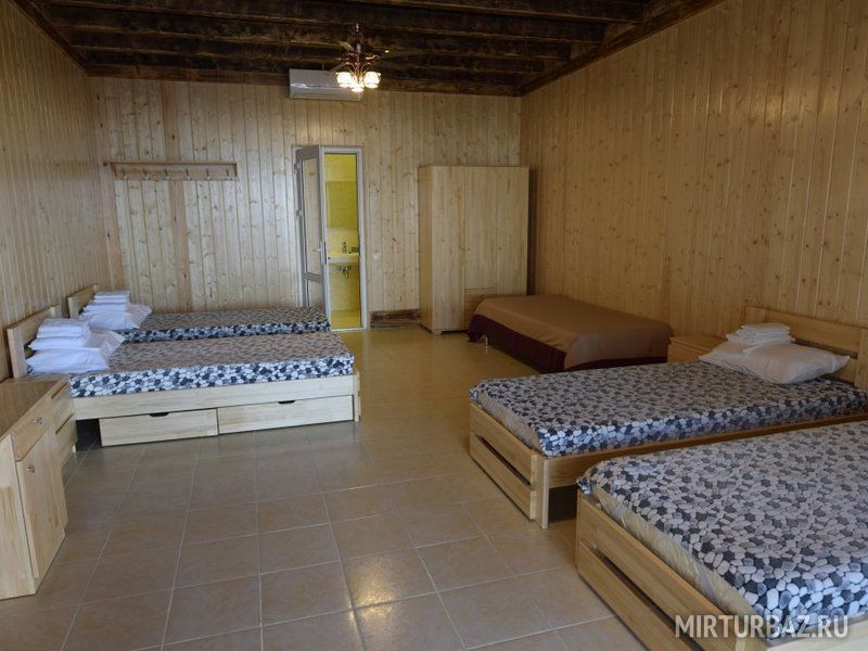 Под каждой кроватью два выдвижных ящика для вещей. При необходимости можно две кровати сдвинуть в двухспальную кровать. Сосновый стол, тумбочки и шкаф придают уют номеру и запах хвои. В номере также холодильник, кондиционер, плазменный телевизор 42 дюйма и wi-fi зона. В каждом номере душевая – 6 кв м с умывальником, унитазом и биде. Изюминка эко-номера - наличие 12 м кв. веранды с большим столом и видом на море с собственным песчаным пляжем в 10-15 метрах от номера.