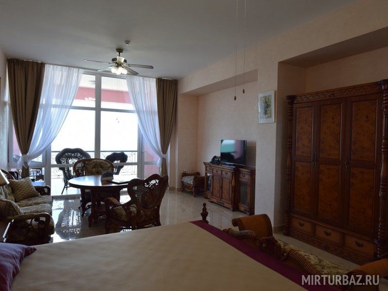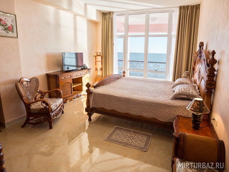 Расположение номера позволяет насладиться незабываемым видом из окна на морской берег, создав незабываемое впечатления моря у ваших ног. В номере современная техника, спутниковое телевидение и оптоволоконный интернет.
