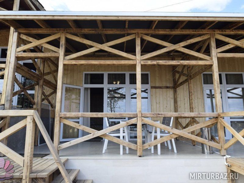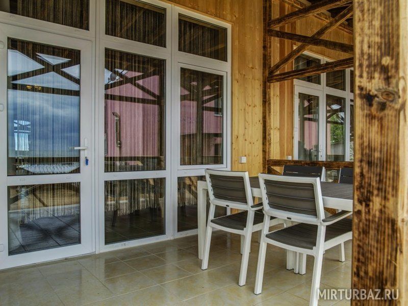 Сосновый стол, тумбочки и шкаф придают уют номеру и запах хвои. В номере также холодильник, кондиционер, плазменный телевизор 42 дюйма и wi-fi зона. В каждом номере душевая – 6 кв м с умывальником, унитазом и биде. Изюминка эко-номера - наличие 12 м кв. веранды с большим столом и видом на море с собственным песчаным пляжем в 10-15 метрах от номера.