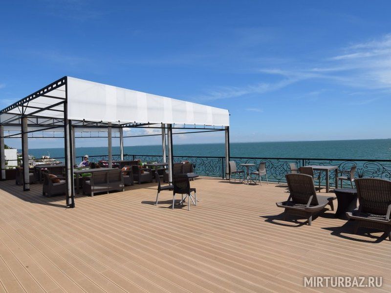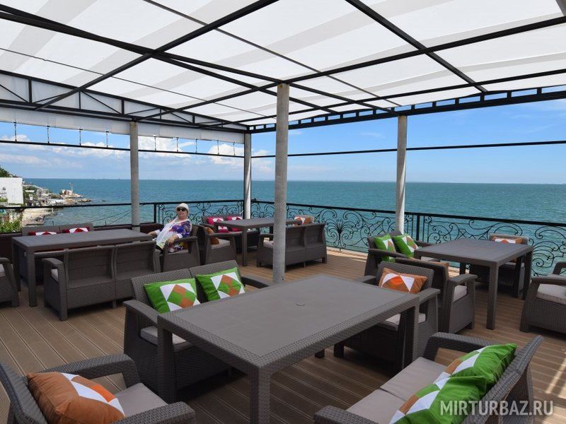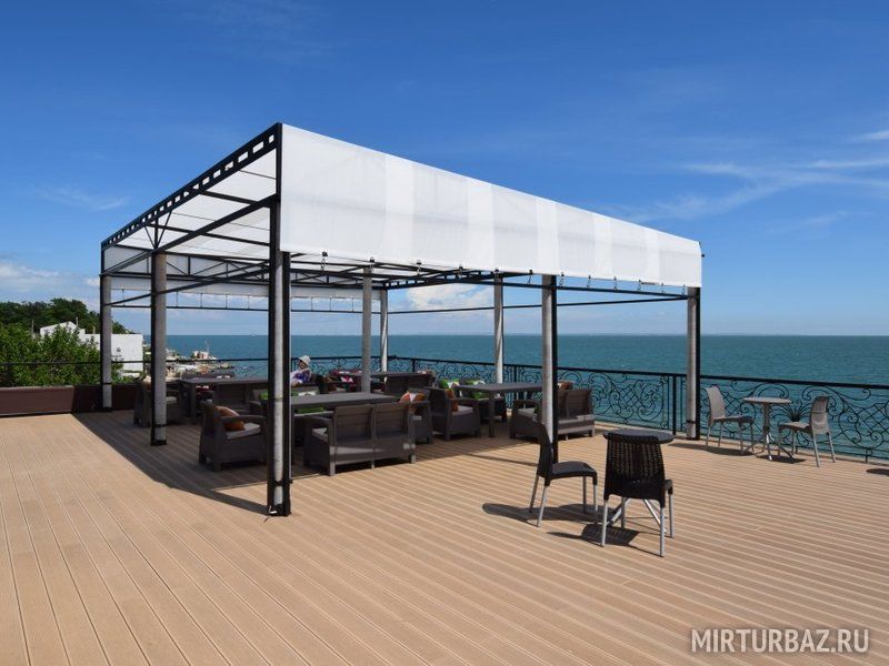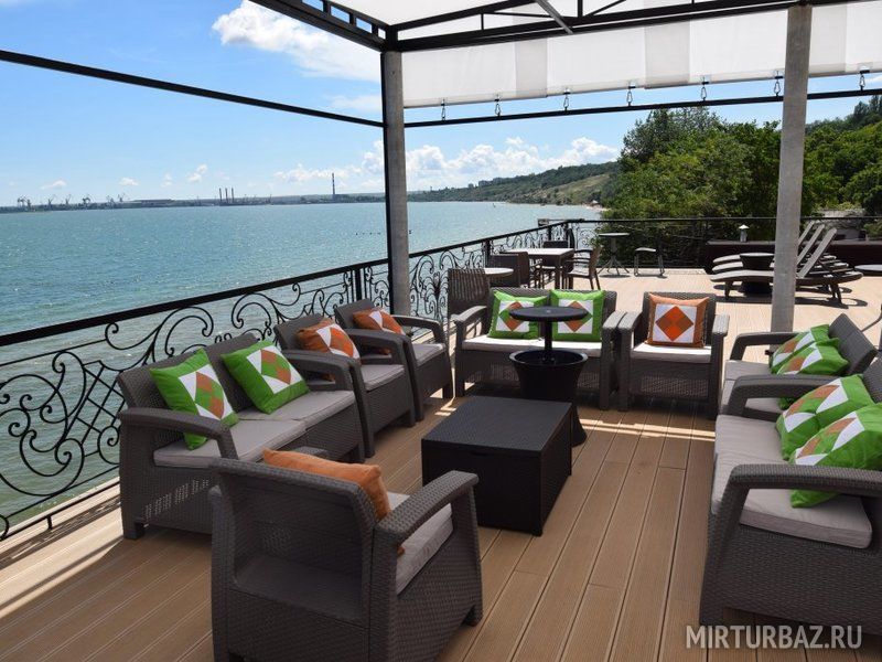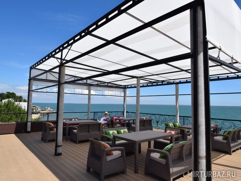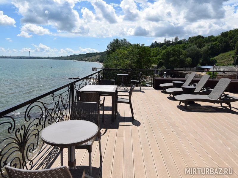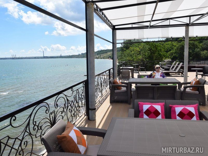 Территория отеля расположена в тихом жилом районе города Керчи, в живописной бухте Керченского пролива, с ласковой чистой морской водой и шелковистым песчаным пляжем, закрытая зелёными склонами холмов от северных ветров.