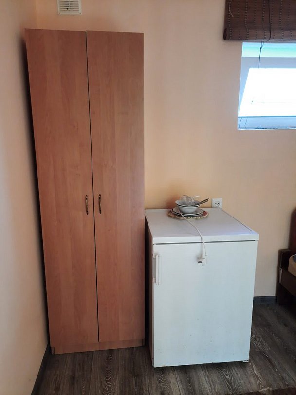 В номере есть: телевизор, рабочий стол/тумба, небольшой холодильник, ванная комната с душем. Может разместиться до трех человек.