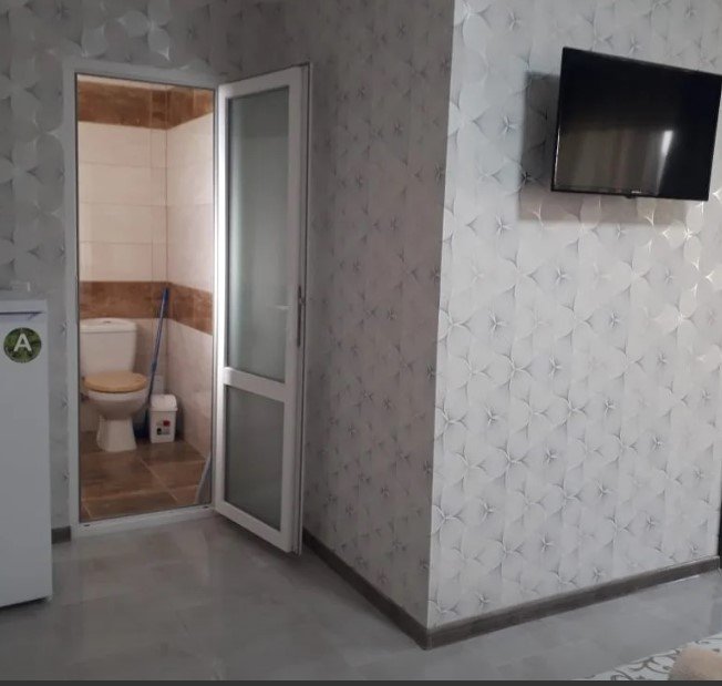 В номере имеются: телевизор, рабочий стол/тумба, небольшой холодильник, кондиционер, ванная комната с душем, мини-кухня со всеми кухонными принадлежностями.