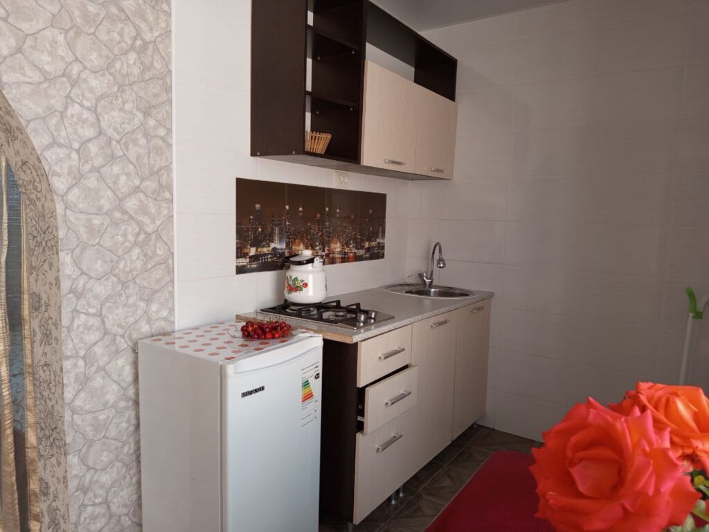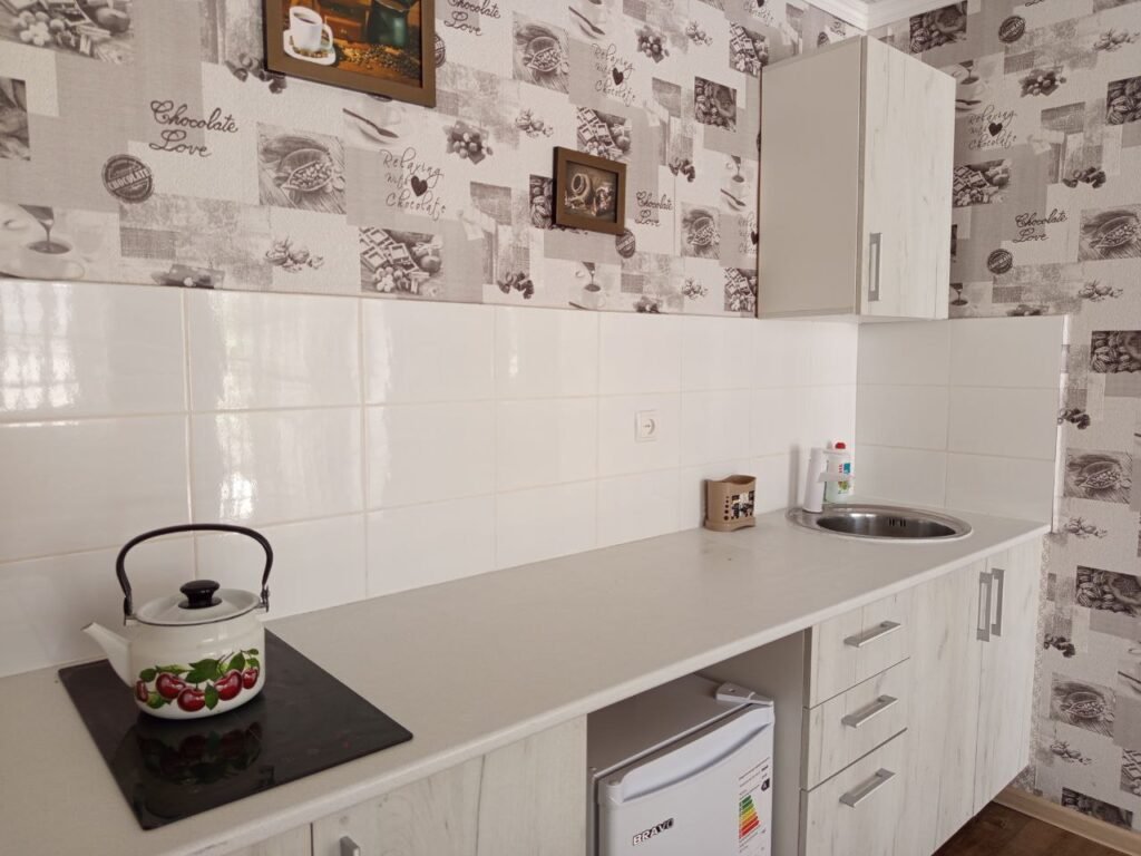 И в номере: небольшой холодильник, мини-кухня со всеми кухонными принадлежностями.