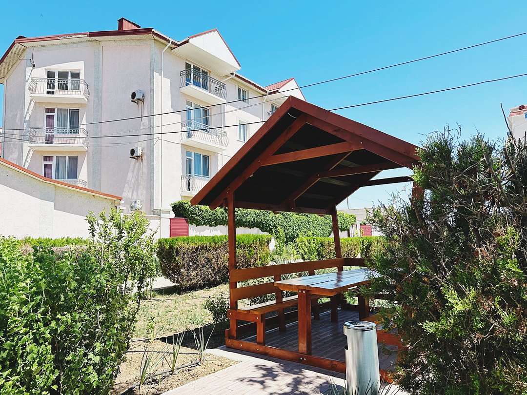 Территория виллы облагорожена и благоустроена. Гости могут пользоваться детской площадкой, бесплатной охраняемой парковкой, зоной барбекю, зелёной зоной отдыха с беседкой и качелями. Отведено отельное место для курения. Зона Wi-Fi (бесплатная) на всей территории. Возможны стирка личных вещей, трансфер, питание. У представителя туристической фирмы можно заказать экскурсии по городу или Крыму, дегустацию крымских вин.