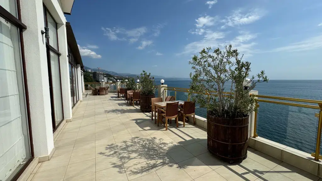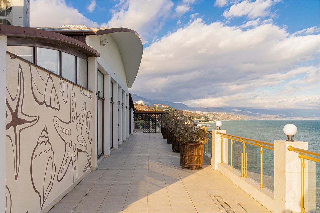 А вот на террасах номеров Люкс и Полулюкс нет никакой личной жизни: первые открыты городу и миру со стороны Черновских камней, вторые - со стороны Алушты...