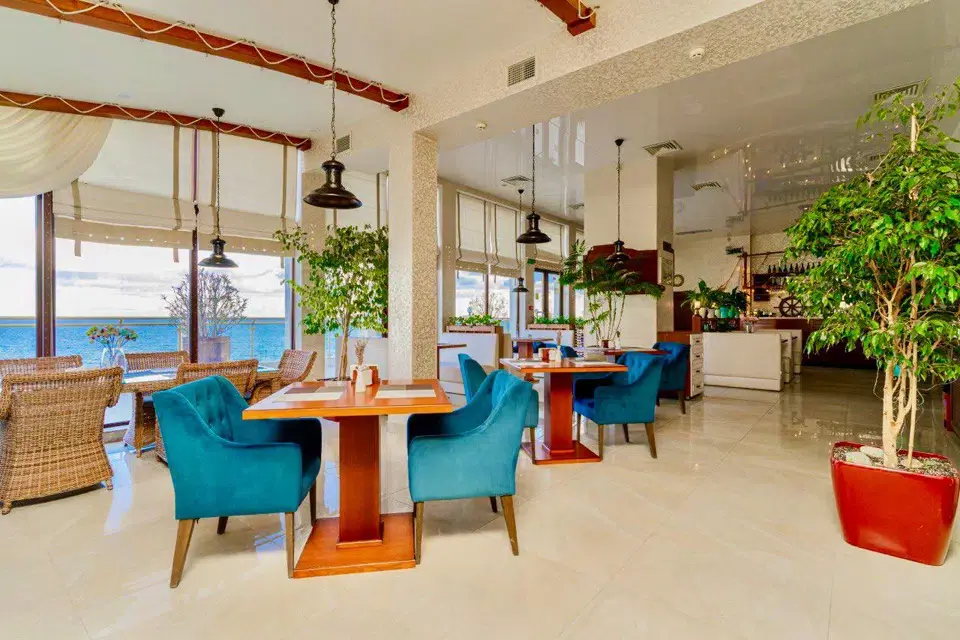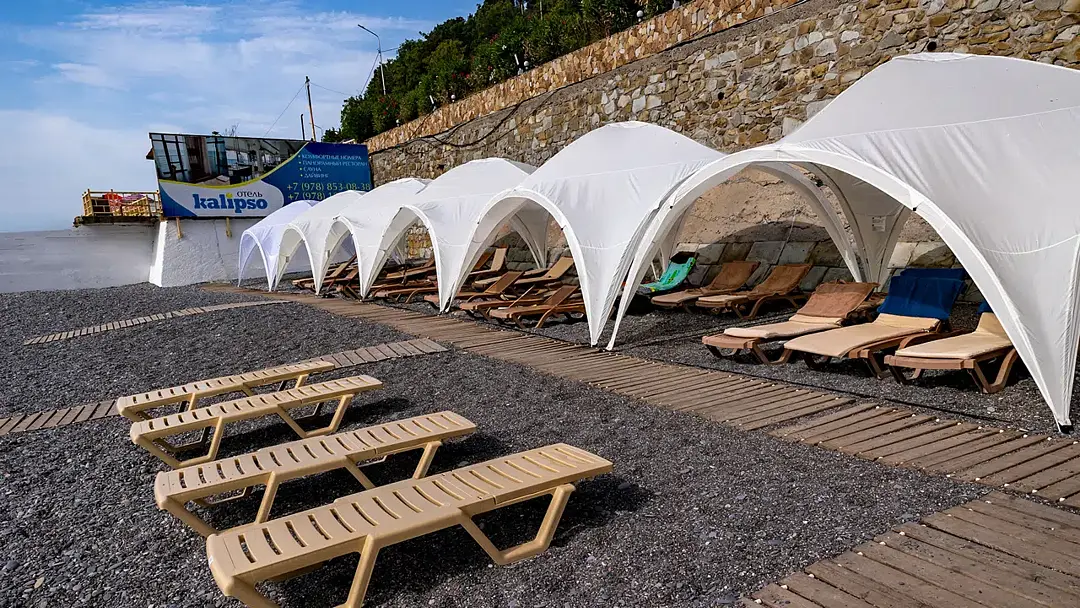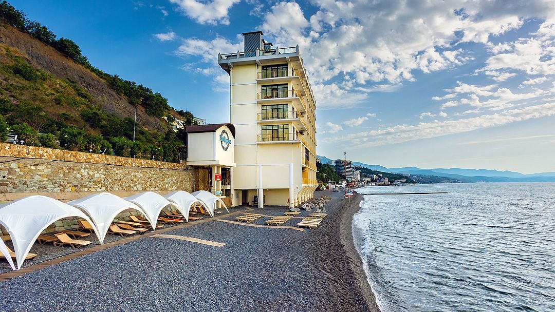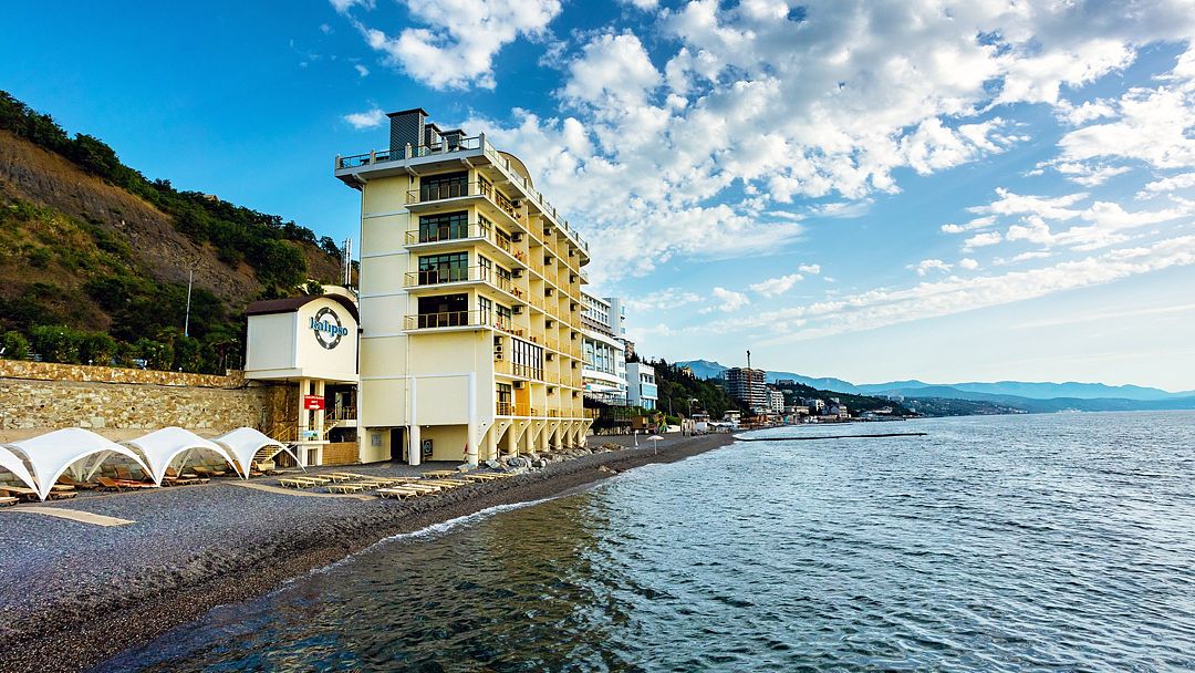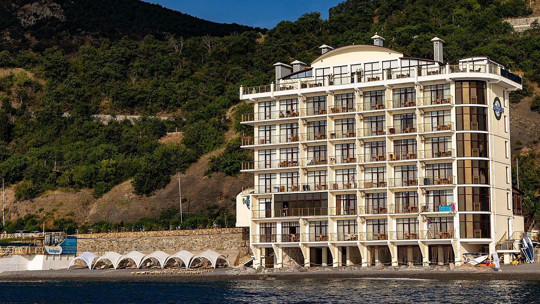 К бонусам Калипсо прилагается фантастическая панорама Южного берега Крыма на восток аж до мыса Меганом, захватывающие восходы светила из морской пучины или горной гряды (в зависимости от времени года), необъятный простор многоликого Чёрного моря с силуэтами далёких дельфинов и чёрных бакланов, с мятежной музыкой волн (буквально у твоих ног), аранжированной криками вездесущих чаек. Кстати, в номерах Полулюкс можно наслаждаться Sunrise-show, прямо лёжа в кровати!