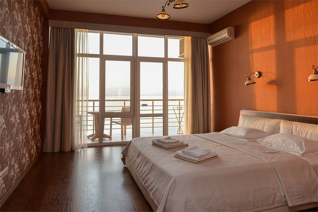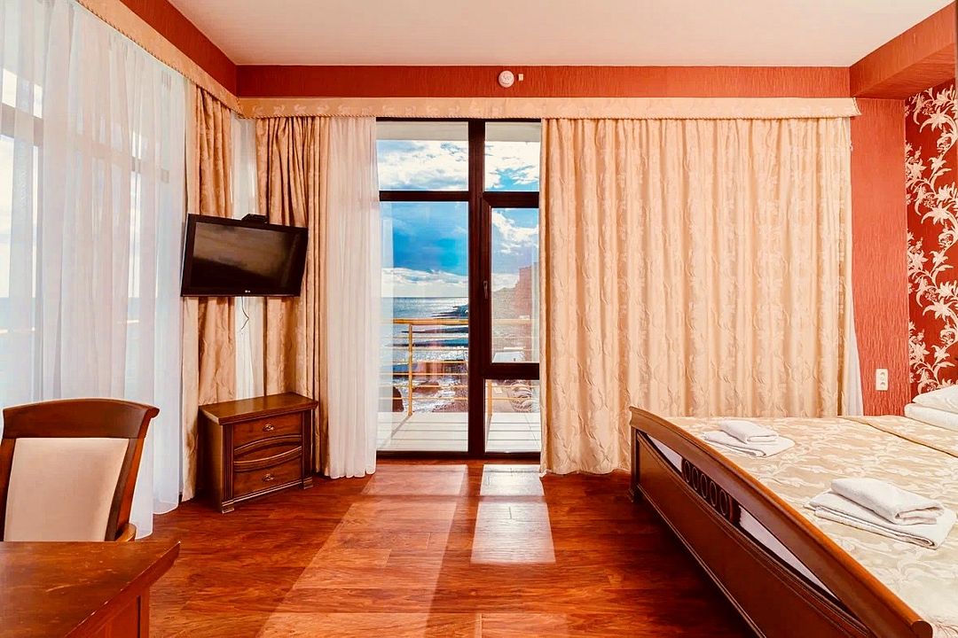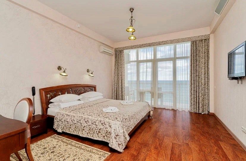 Светлый однокомнатный номер с панорамными окнами, балконом и шикарным видом на море, оснащенный качественной мебелью и сантехникой, площадью 20 м2 позволит вам расслабиться и позабыть обо всех проблемах!Услуги и удобства