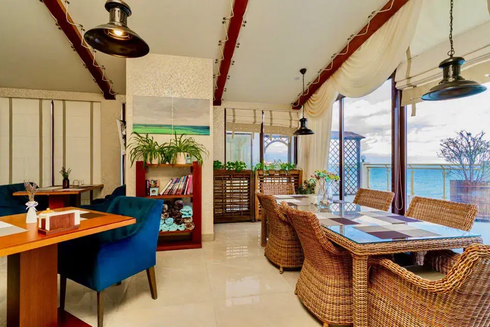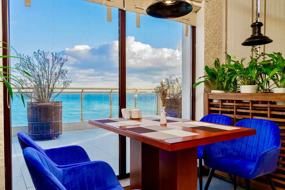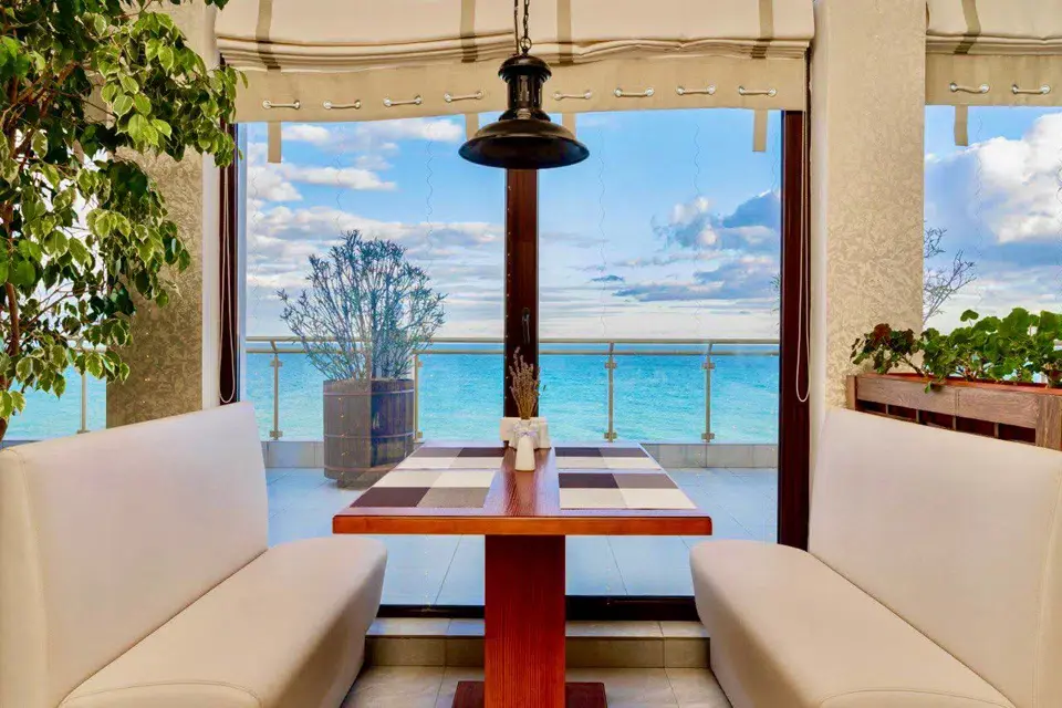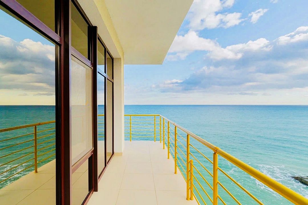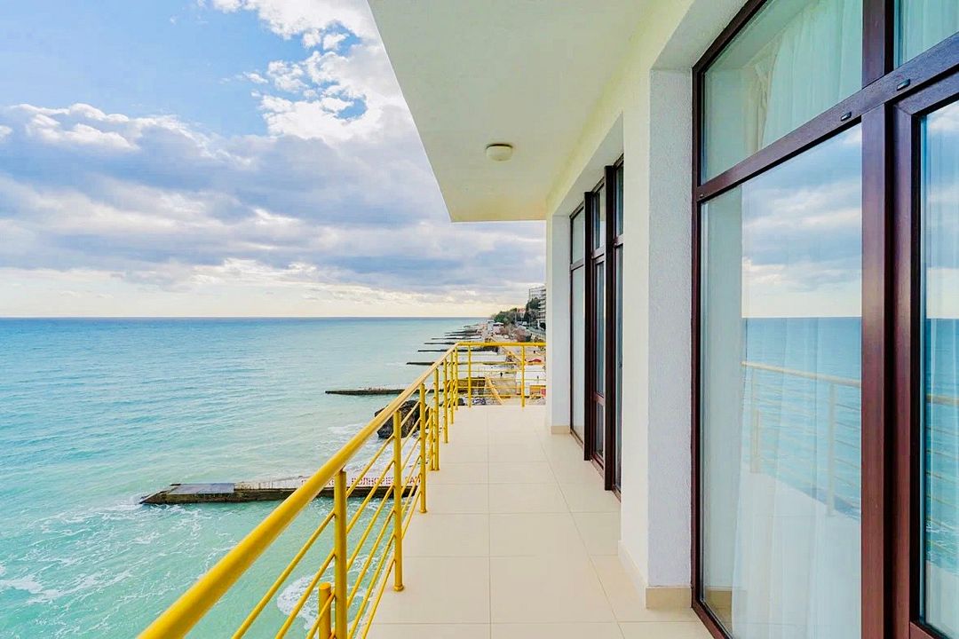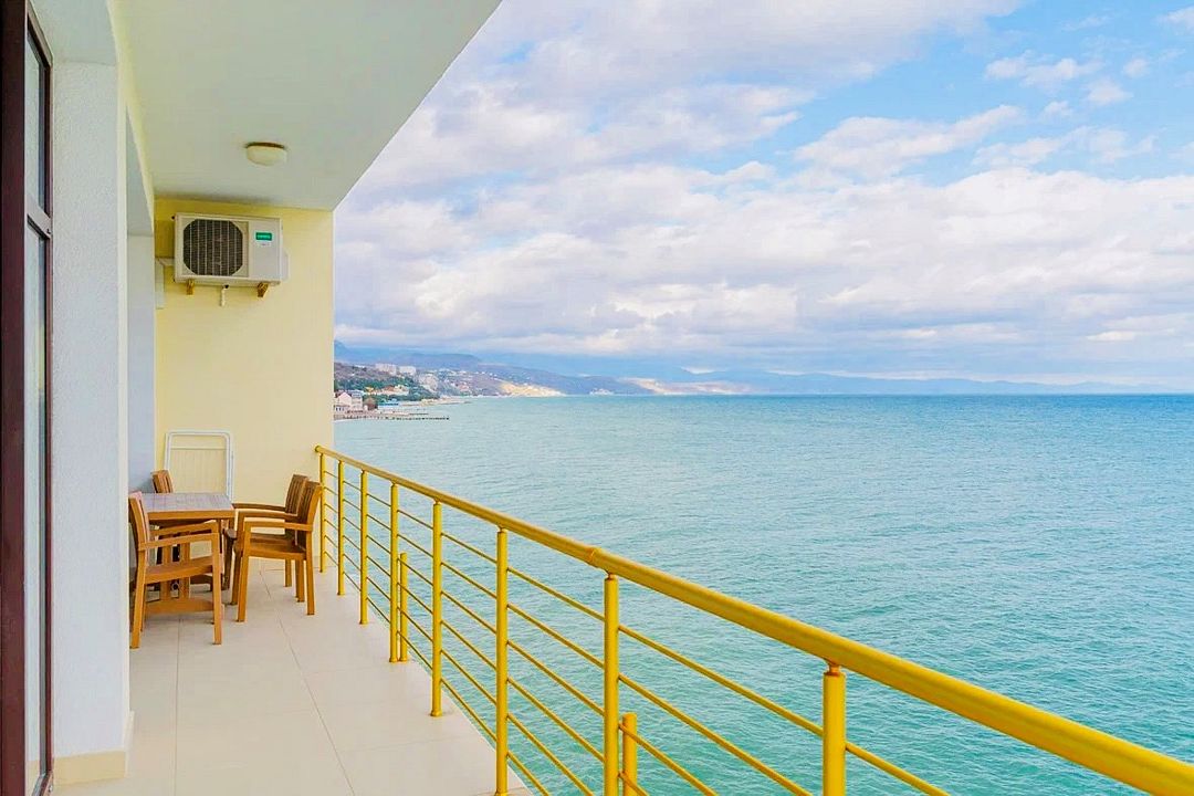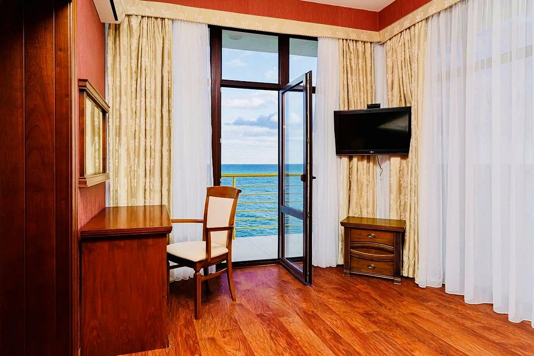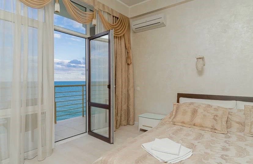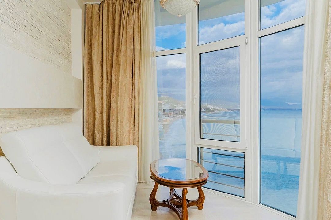 Однокомнатный номер с панорамными окнами, балконом и шикарным видом на море, оснащенный качественной мебелью и сантехникой, площадью 20 м2Услуги и удобства