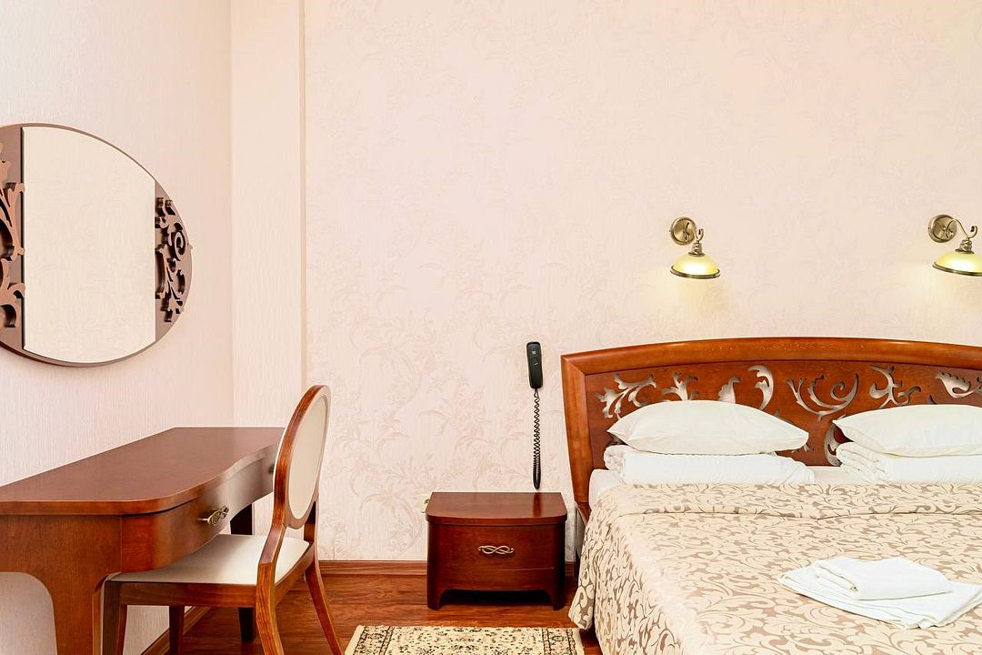 Просторный однокомнатный номер, оснащенный качественной мебелью и сантехникой площадью 26 м 2. Архитектурное решение — заменить часть стены панорамными окнами, что позволило развернуть обзор прямо из номера и дало дополнительное ощущение света и пространства.Услуги и удобства