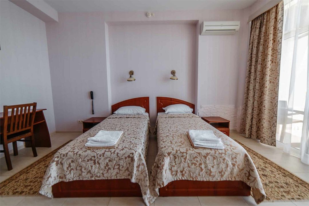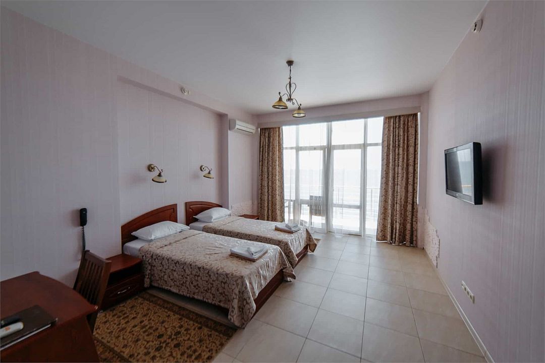 Wi-Fi, интернет, кондиционер, светильник, фен, электронные замки, душевая кабина, биде, банные полотенца, пляжные полотенца, тапочки, косметические средства, балкон, две односпальные кровати, гладильная доска, тумбы, стулья, обслуживание номеров, сейф, чайник, вид на море, кулер на этаже, плиточное покрытие, высокие потолки, стул, туалетный столик, панорамные окна, цифровое тв, внутренний телефон, телевизор с плоским экраном, мини-холодильник, москитная сетка, шкаф-купе, телевизор со Smart TV, услуги прачечной (платно), вешалки-плечики, окна от пола до потолка, зеркало в полный ростВ гостиничном номере