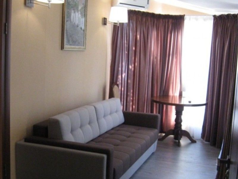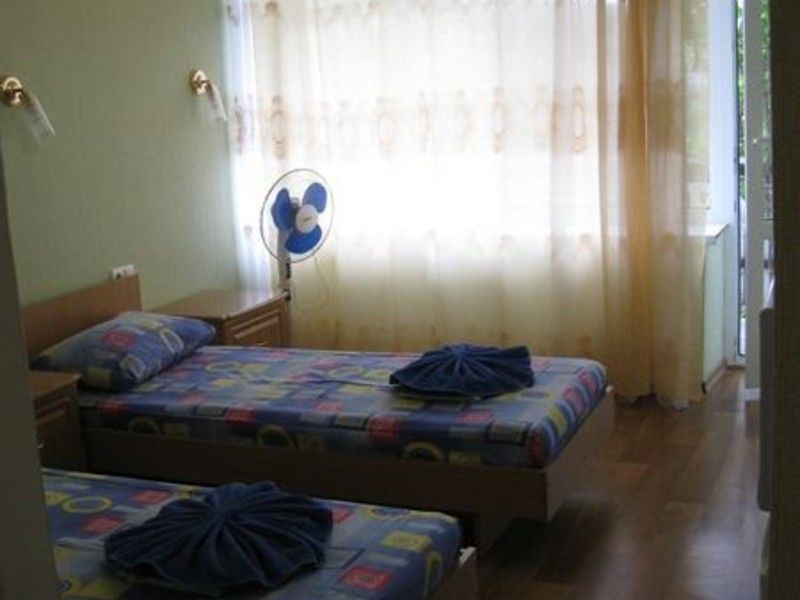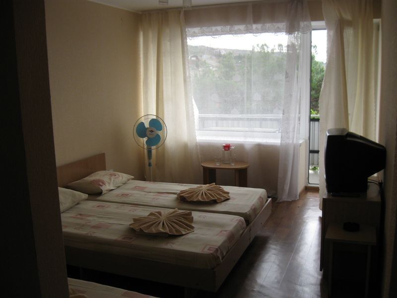 В каждом номере: две односпальные кровати, ванная комната, шкаф для белья, журнальный столик, пуфики, тумбочки, телевизор, холодильник, напольный вентилятор или кондиционер (уточнять при бронировании). Балкон с видом на море и горы. На балконе столик и стулья.