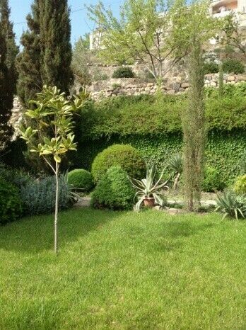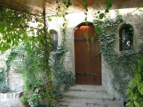 В основной усадьбе с комфортом могут разместиться 7 человек. Все удобства, спутниковое TV, кондиционеры, 3 спальни, гостиная с камином. Просторная беседка, увитая глицинией, для трапезы и общения. Вокруг – ухоженный сад с редкими субтропическими растениями и цветами. В пруду плавают декоративные рыбки.