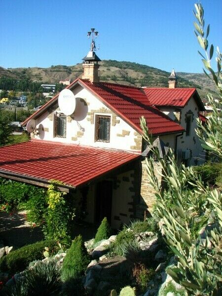 Усадьба «Капситерра» - райский уголок для любителей уединения, комфорта и тишины. Здесь вы с головой погрузитесь в мир обворожительной, нетронутой природы, забыв обо всех своих проблемах и жизненных неурядицах. Усадьба расположена в 450 метрах от морского берега. Инфраструктура включает в себя большой коттедж площадью 120 квадратных метров и бунгало. Коттедж построен в стиле европейского замка. Из окон открывается завораживающий вид на морскую лазурь и горы.