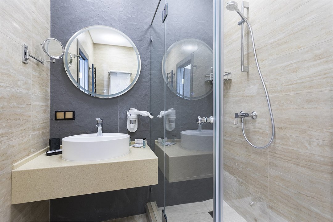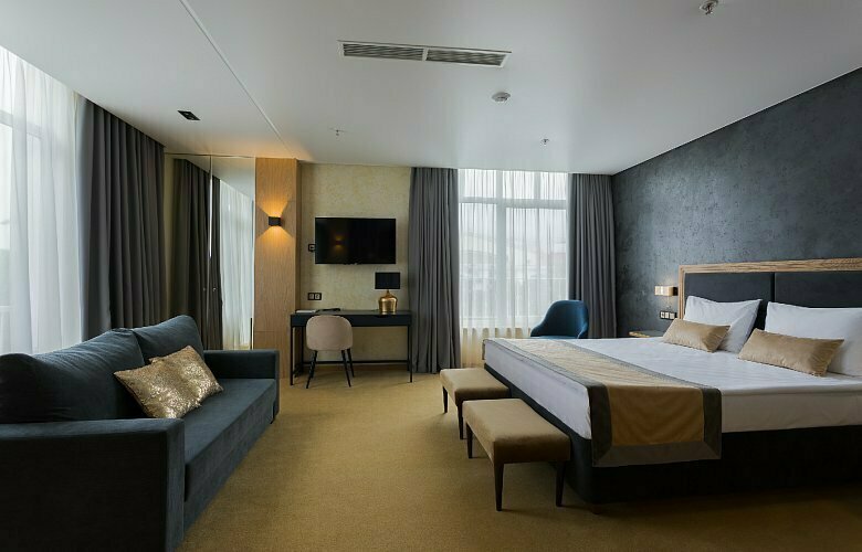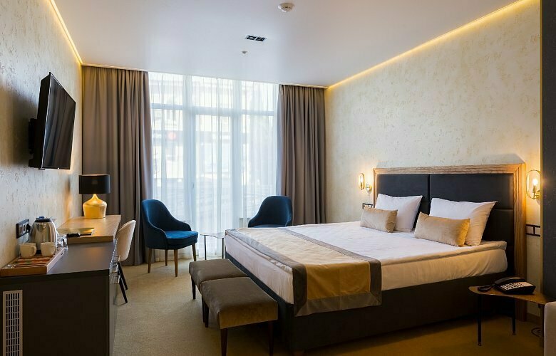 Интерьер отеля, номеров стильный и красивый. Номера просторные, душевая зона огромная, все очень удобно и радует глаз.