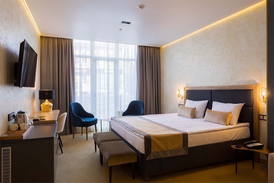 телевизор, кабельное телевидение, Wi-Fi, холодильник, светильник, настольные лампы, фен, электронные замки, микроволновая печь, ванная комната, душевая кабина, биде, теплый пол, халаты, банные полотенца, пляжные полотенца, тапочки, гигиенические средства, косметические средства, кровать «King size», гипоаллергенное белье, тумбы, журнальный столик, письменный стол, багажная тумба, зеркало, пуфики, эксклюзивная мебель, мебельный гарнитур, письменные принадлежности, чайный набор, набор посуды, обслуживание номеров, информационная карта, меню, сейф, унитаз, мягкая мебель, косметическое зеркало, питьевая вода, гостиная зона, ковровое покрытие, отопление, душ, вид на город, кулер на этаже, кресло, стаканы, столовые приборы, туалетный столик, стул, туалетные средства, диван-кровать, раскладной диван, внутренний телефон, телевизор с плоским экраном, мини-холодильник, кухонный уголок, шкаф-купе, гостиничная парфюмерия, номер для некурящих, фанкойл, USB-порт, гигиенический душ, чайная станция, без питомцевВ гостиничном номере