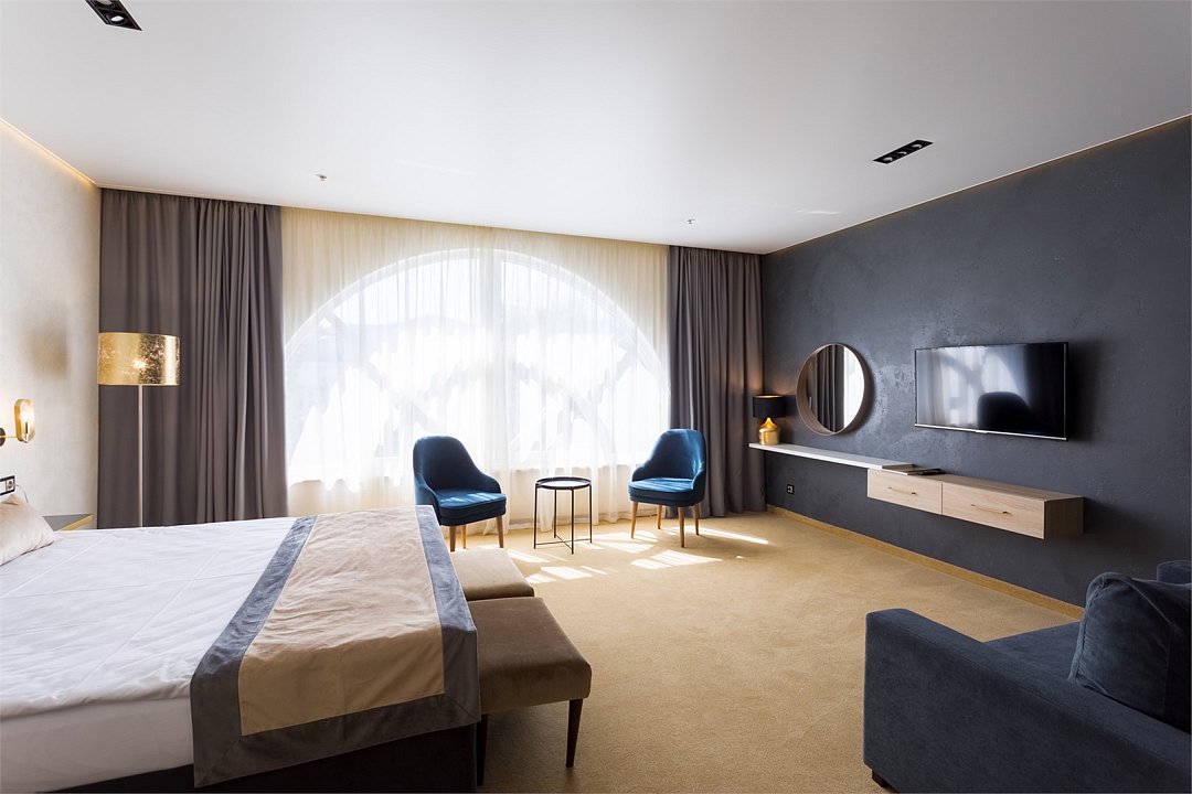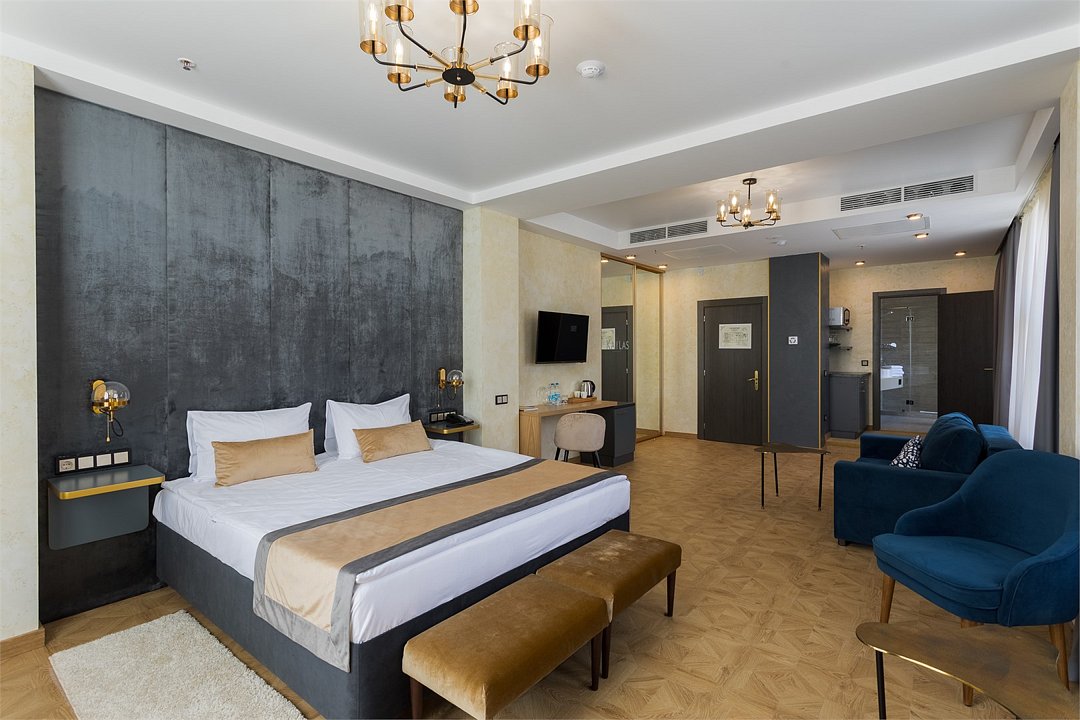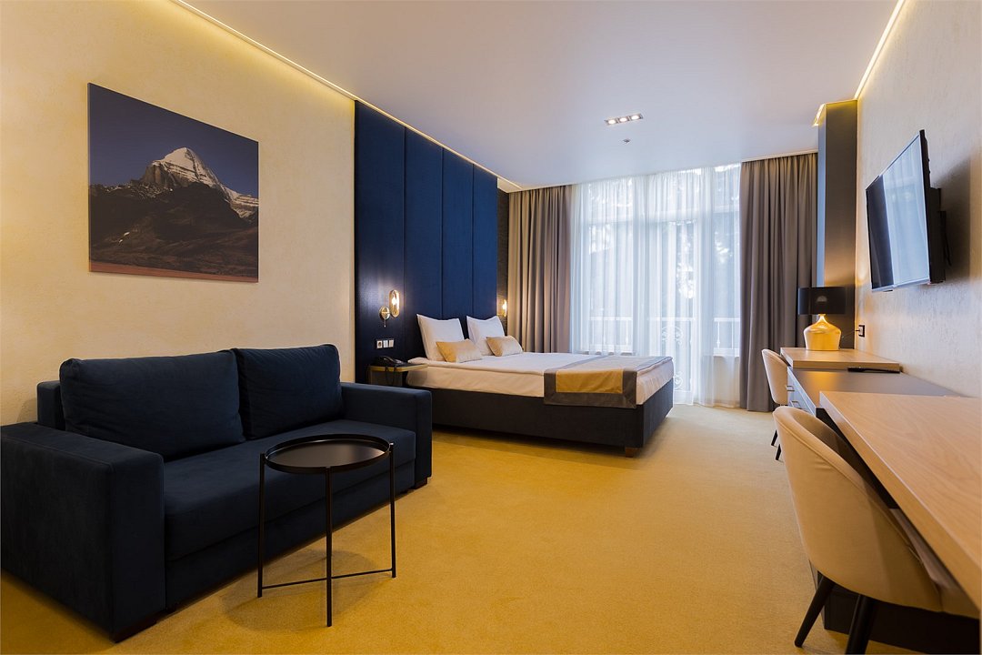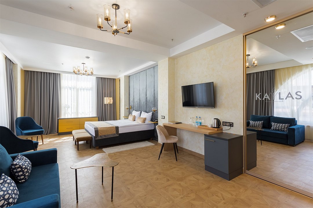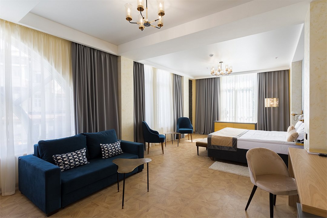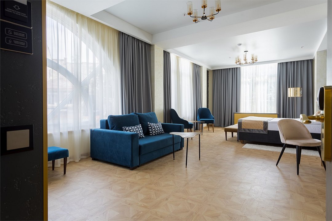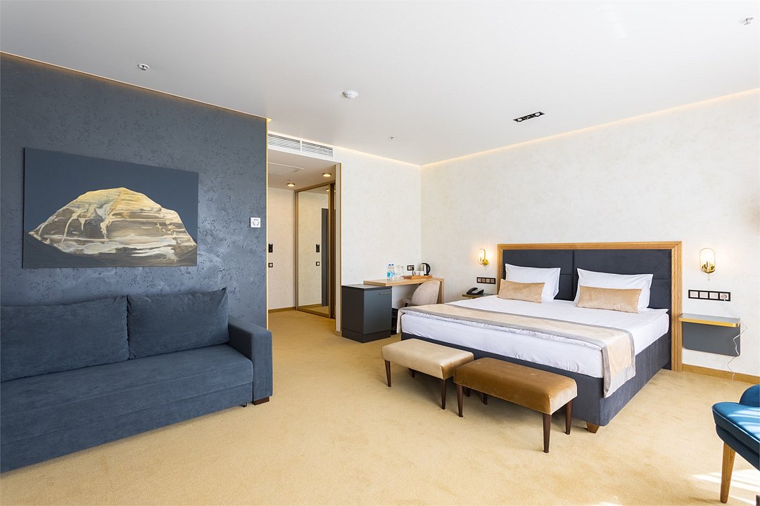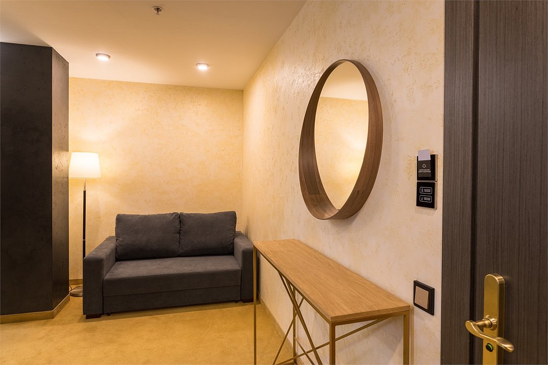 Элегантный, просторный номер подходит как для для семейных пар с детьми так и для бизнес путешественников. Дополнительное место представлено в виде раскладного дивана.Услуги и удобства