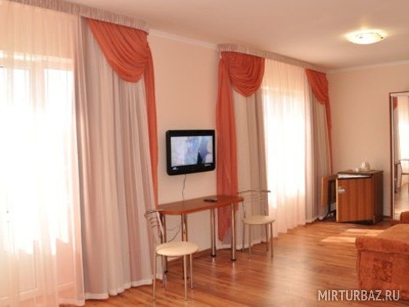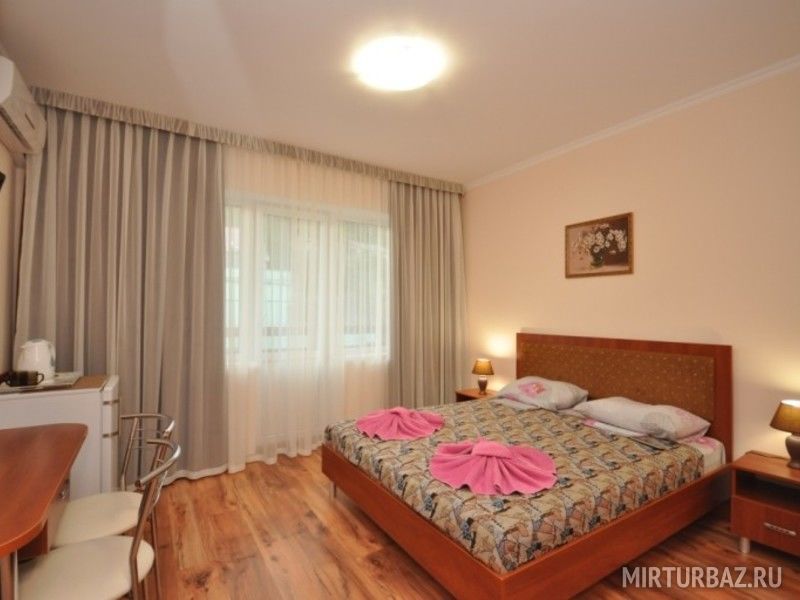 В номере: необходимая мебель (кровать, шкаф, диван, тумбочки, столик), холодильник, кондиционер, чайник по требованию, посуда, кабельное ТВ, санузел (душ, умывальник, туалет, фен).