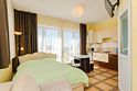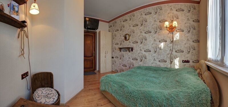 На первом этаже обустроено три стандартных номера и общая для них кухня. На втором и третьем этажах находятся два номера повышенной комфортности — апартаменты. Каждый номер оборудован спальными местами, кондиционером, ЖК-телевизором, индивидуальным санузлом и душем.