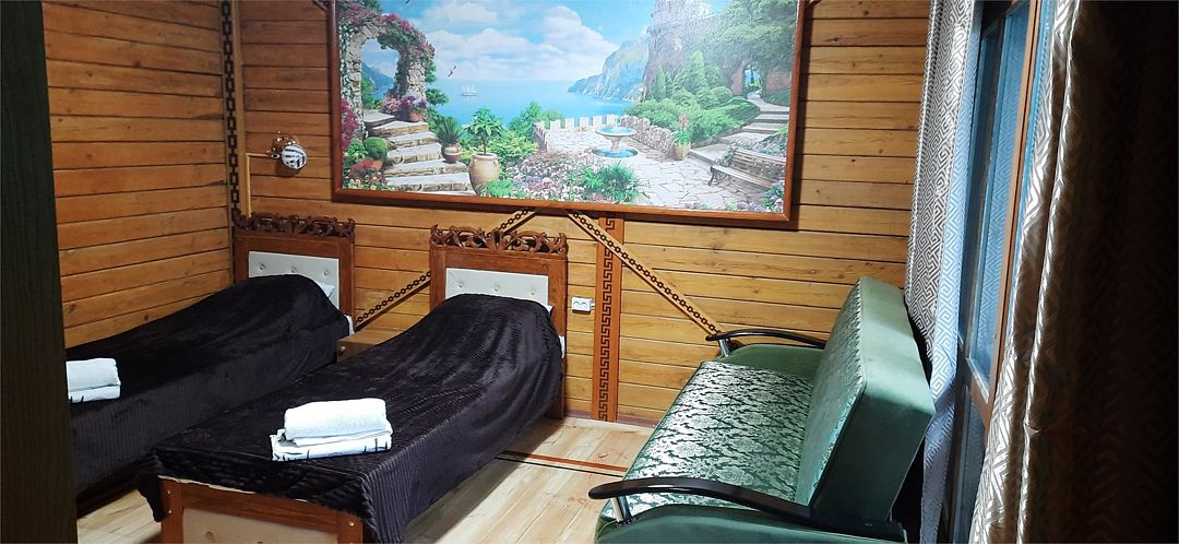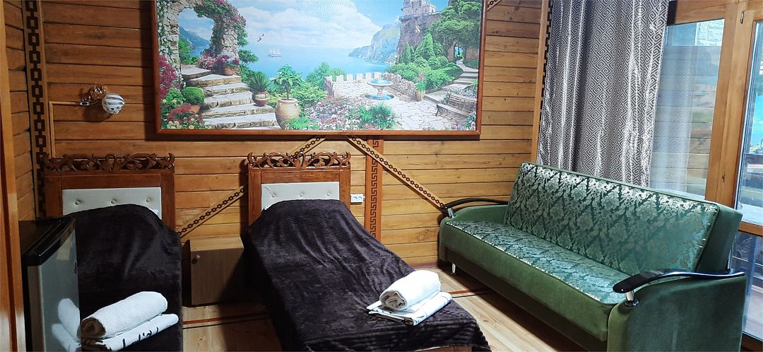 Путешествие с семьейХорошее местоЭто надо признать прекрасное место. До моря минут 20 вверх. Но на месте! Комната, удобства продуманное пространство.Пансионат из профилированного бруса 130#100. В четыре этажа! На три подъезда. 16 номеров. Бассейн с горкой. Из бассейна фантастический вид на море. А на море и с него возит машина по запросу. Во дворе натянут экран и вечером показывают кино. Можно смотреть с балкона любого номера. Можно заказать питание. Мы заказать не успели, но с утра нам сделали омлет большой и вкусный. В общем отличное место.