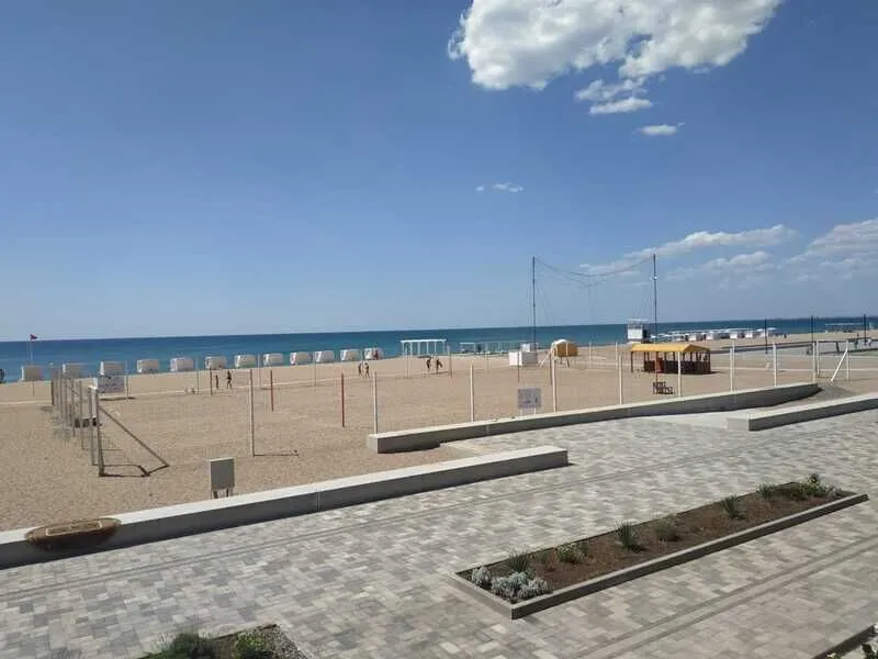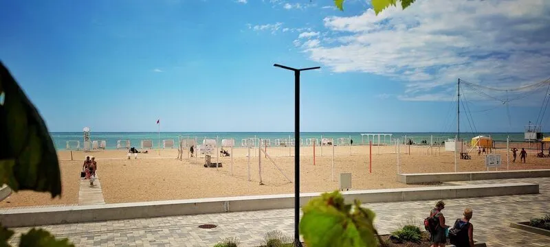 Тип пляжа: песчаныйУдобный подход к морю, дно пологое без камней. Пляж полностью оборудован для вашего отдыха: шезлонги, зонты, водные аттракционы, детские горки, кафе.