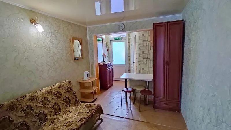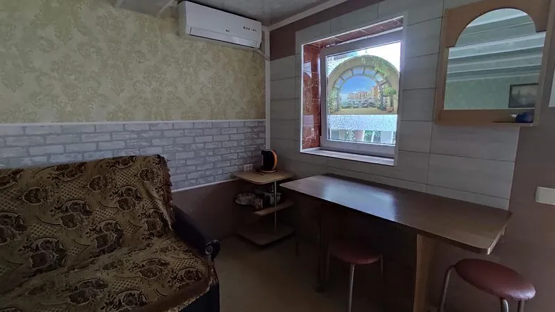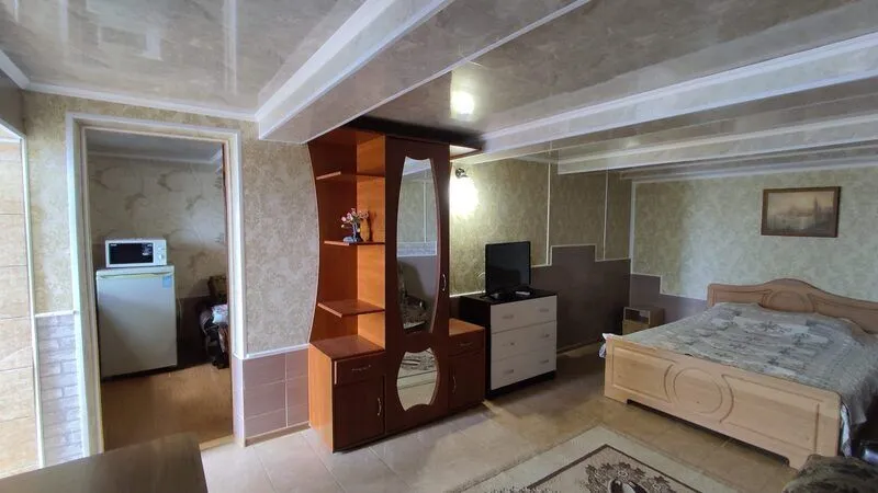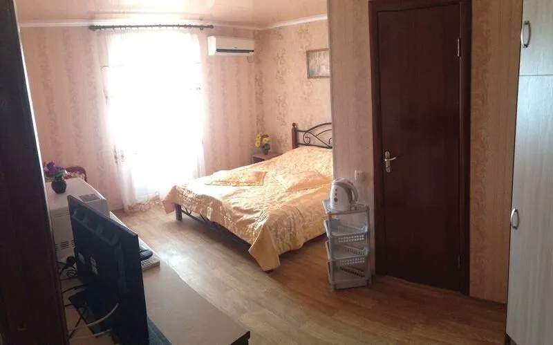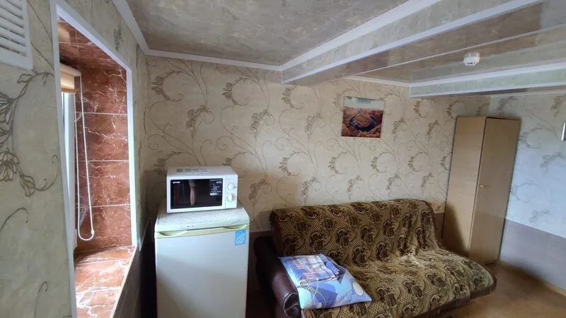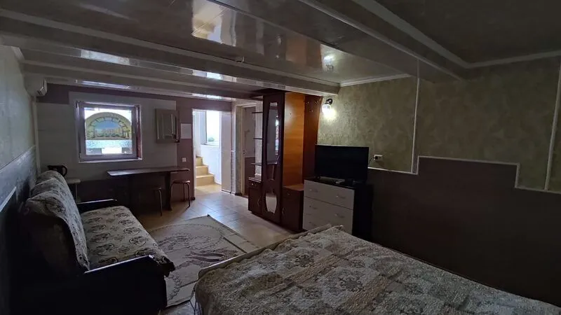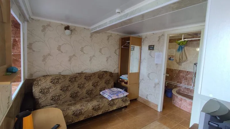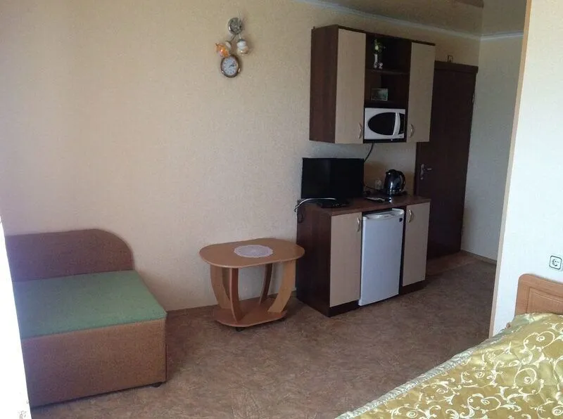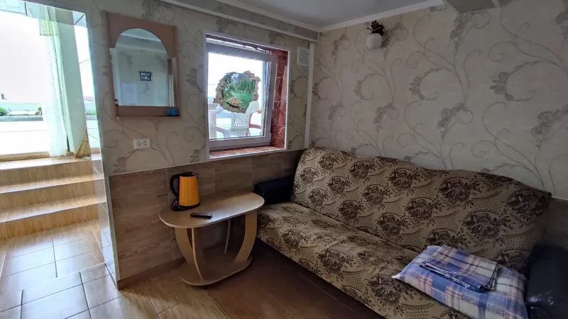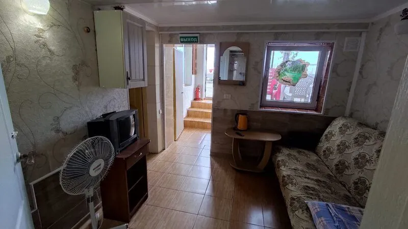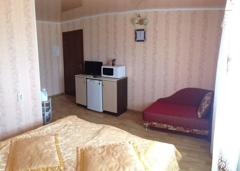Однокомнатные 2-х, 3-х местные номера с кондиционером, видом на море и балконом. Отдельный вход с набережной. Вход на этаж по удобной лестнице, имеется большой смотровой балкон с видом на море и евпаторию (имеются стол и стулья).