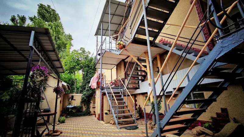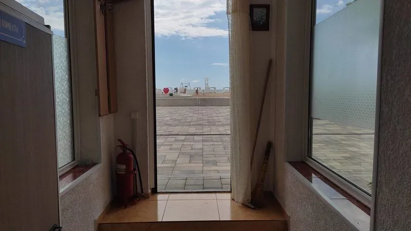 Вход на этаж по удобной лестнице, имеется большая общая смотровая площадка с видом на море и г. Саки (имеются стол и стулья).