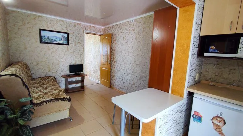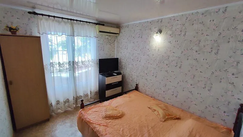 Спальная комната меблирована, есть телевизор, спутниковое TV (32 дюйма), кондиционер, двухспальная кровать, балкон с видом на море. Первая комната с раскладывающимся диваном, который служит отдельным спальным местом.