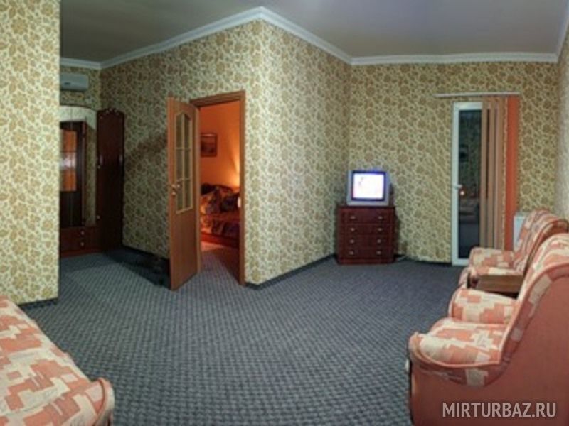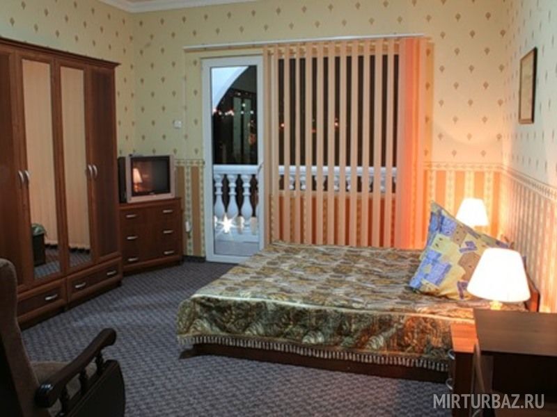 Номер оснащен мягкой мебелью, кондиционером, телевизором с кабельным телевидением, холодильником, сейфом, санузлом с душем. Горячая вода подается бесперебойно. Каждый номер имеет выход на собственный балкон, где стоит столик, два стула, сушилка для белья.