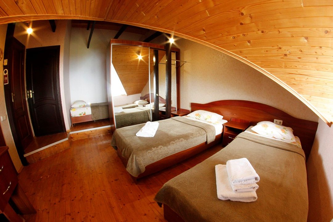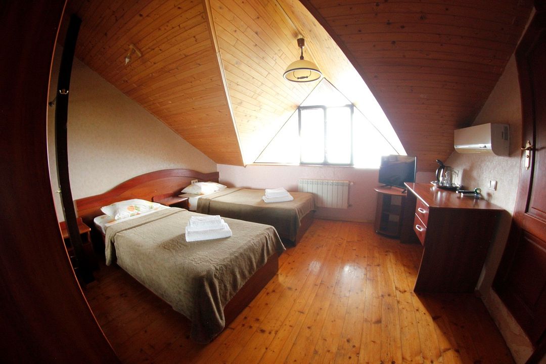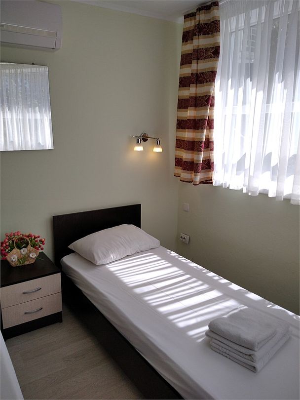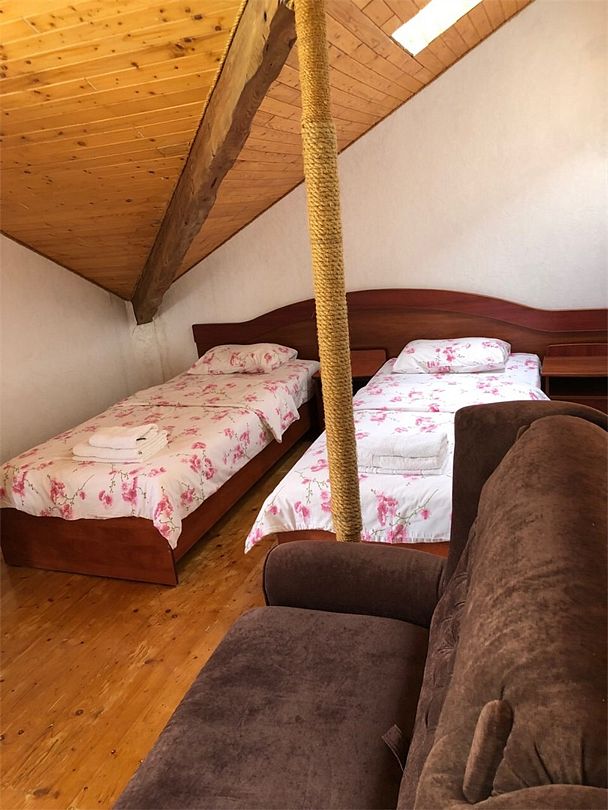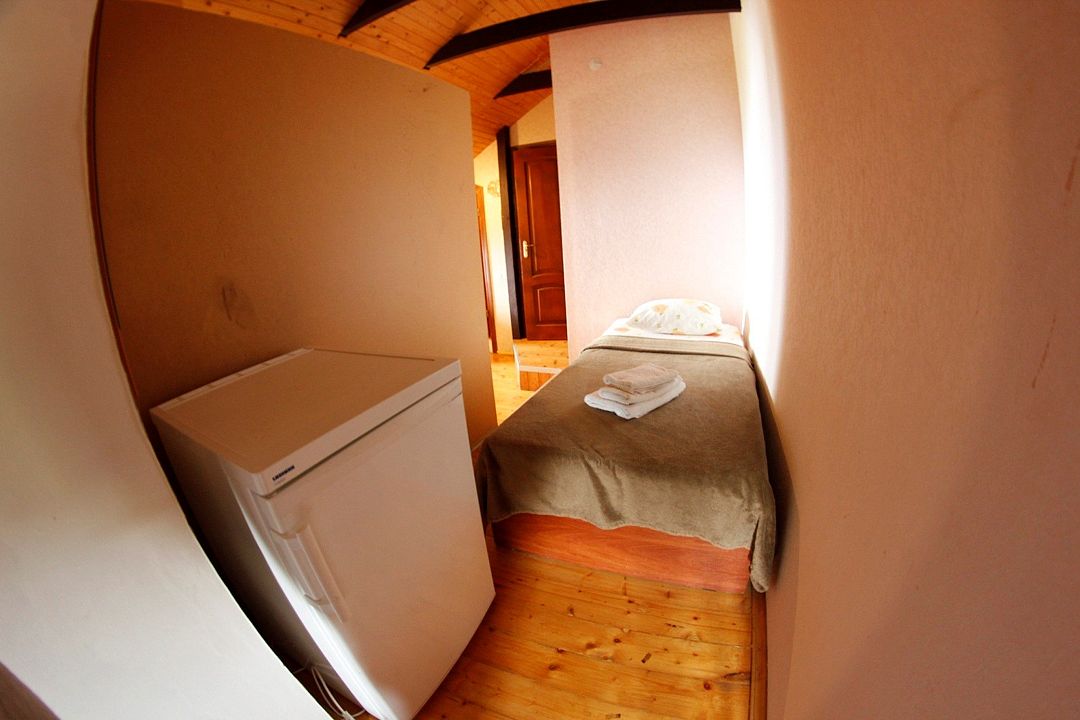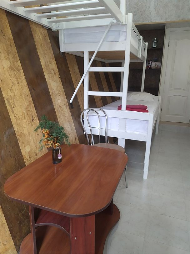 Компактный уютный номер, хостельного типа на 3 человека. В номере отдельный вход со двора, собственный санузел и душевая. Три отдельных места на двухъярусных кроватях.
