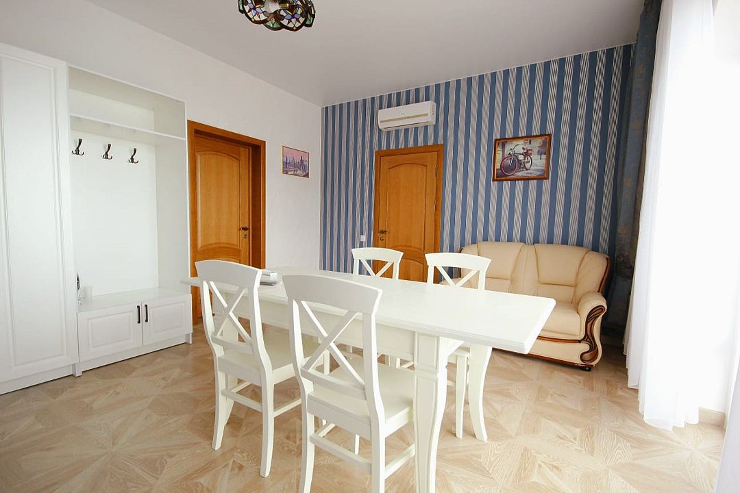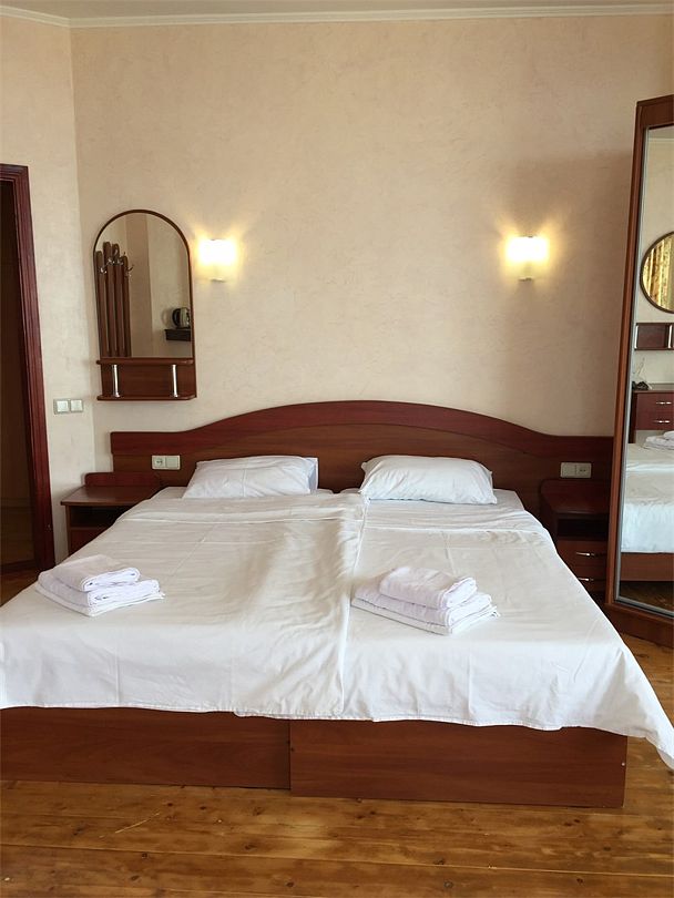 Просторный номер после дизайнерского ремонта с дополнительным спальным местом. Дополнительное место на раскладном диване. С балкона открывается шикарный вид на горы и море.