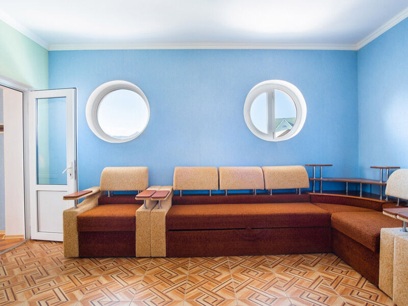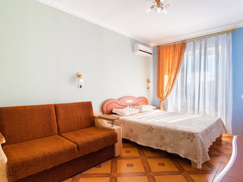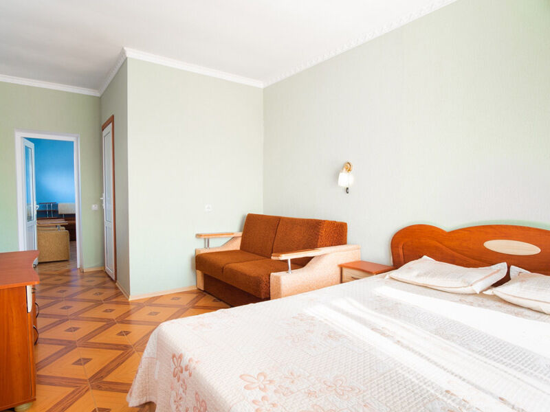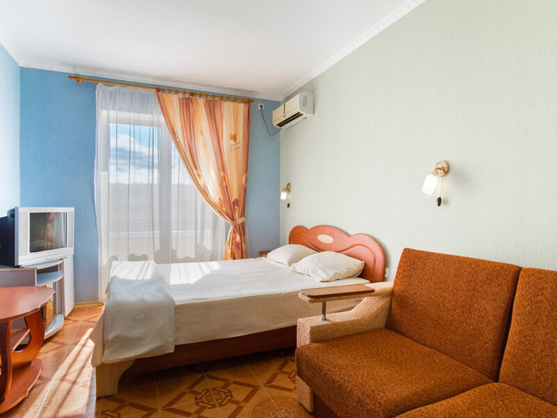 Четырехэтажный корпус отеля занимает небольшую закрытую территорию. Жилой фонд, рассчитанные на 50 человек, предлагает отдыхающим однокомнатные и двухкомнатные номера Стандарт. В номерах светлый приятный интерьер в голубых тонах, есть санузел с душем, кондиционер и необходимая бытовая техника — фен, телевизор, холодильник, электрочайник.
