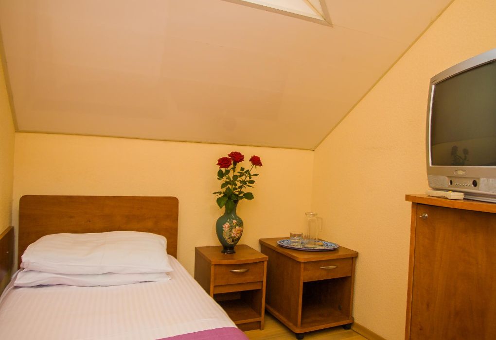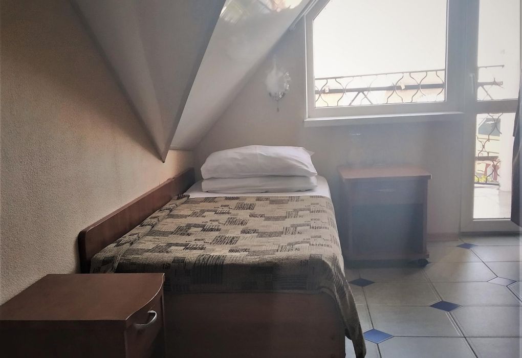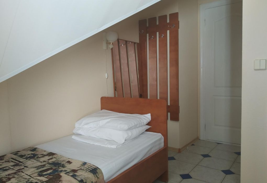 Часть номеров - мансарда (скошенный потолок).