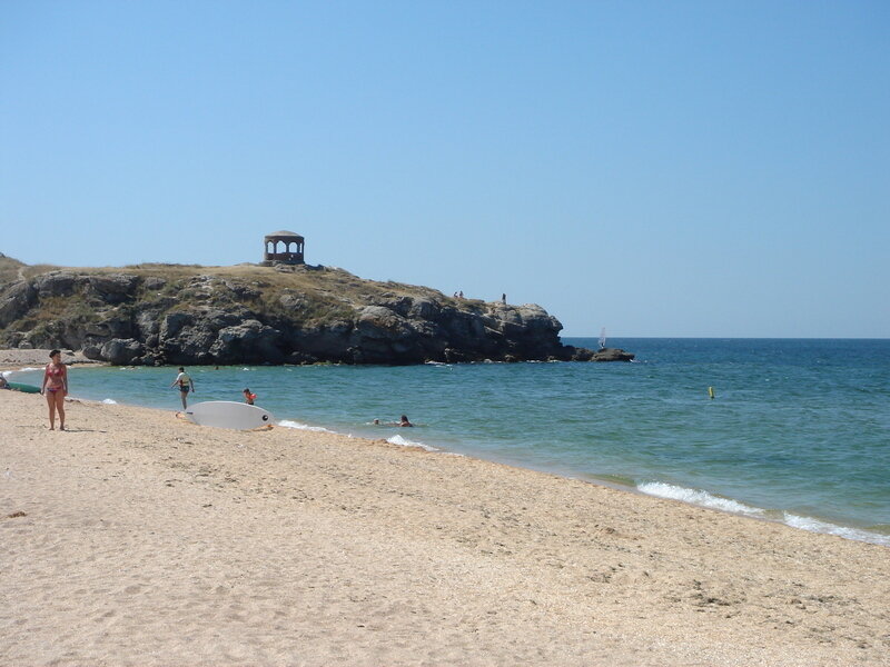 Всего в 200 метрах от жилых корпусов пансионата расположен городской пляж. Берег и дно моря песчаные, вход в воду пологий, поэтому пляж отлично подходит для отдыха с детьми.