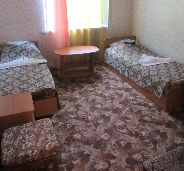 Пансионат занимает небольшую благоустроенную территорию, на которой находятся 8 корпусов в два и три этажа. Жилой фонд, рассчитанный на 100 человек, предлагает гостям номера с индивидуальными удобствами. В комнатах есть напольный вентилятор, телевизор, мини-холодильник и собственный санузел с душем.