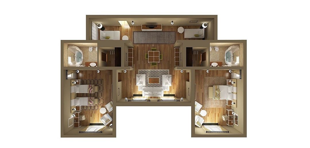 • 3 гостевых с душевыми | 6 спальных мест;