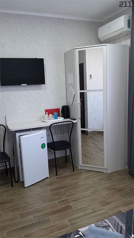 телевизор, Wi-Fi, холодильник, кондиционер, фен, душевая кабина, санузел, банные полотенца, двуспальная кровать, тумбы, стулья, шкаф для одежды, вешалки, зеркало, набор посуды, чайник, унитаз, раковина, вид на город, кулер на этаже, плиточное покрытие, вид во двор, стаканы, столовые приборы, стол, туалетные средства, москитная сетка, номер для некурящих, двухъярусная кровать, фумигатор, уборка номера, услуги прачечной (платно), затемняющая штора, зеркало в полный ростВ гостиничном номере