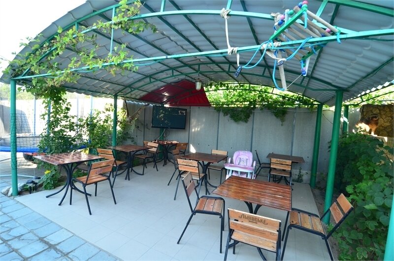 Также есть кафе с открытой площадкой. Там вы можете отдохнуть и расслабиться тихим летним вечером. В меню кафе освежающие напитки, пиво, коктейли, лёгкие закуски. По просьбе вам могут приготовить шашлык, барбекю, блюда из дичи.