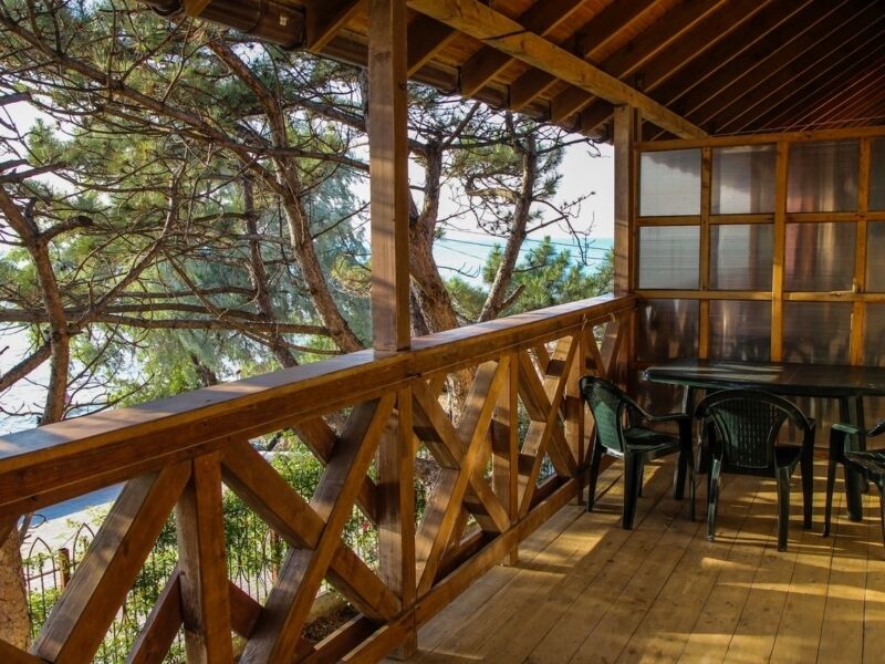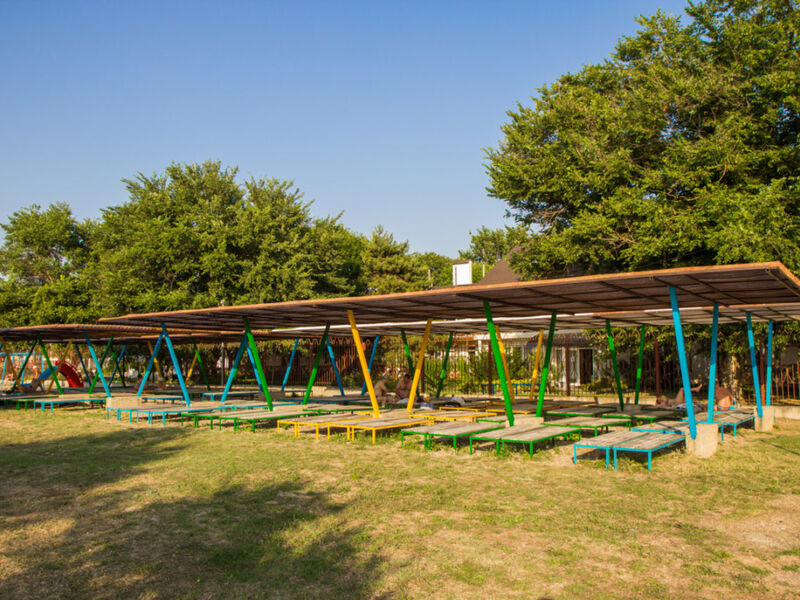 Всего в 20 метрах от базы отдыха «Лагуна» находится поселковый песчано-галечный пляж, можно взять напрокат зонты и шезлонги.