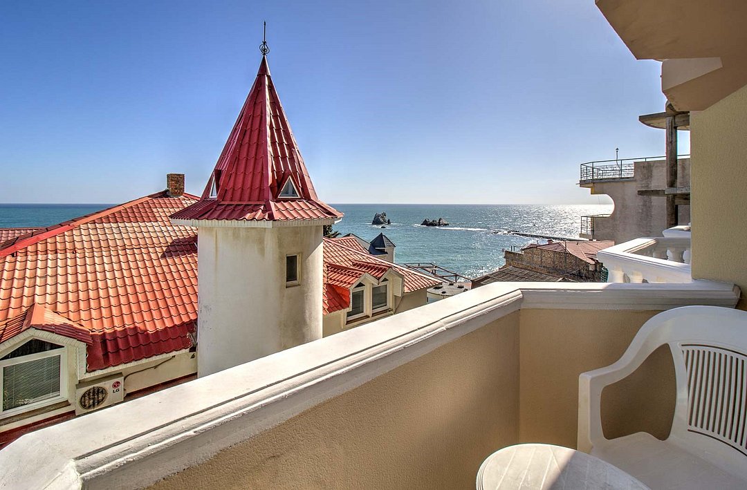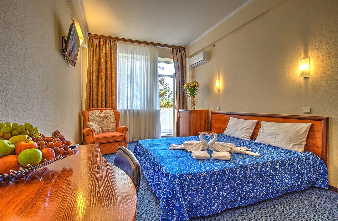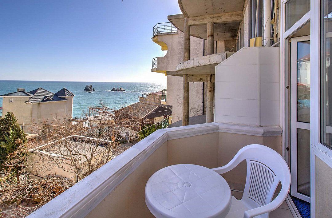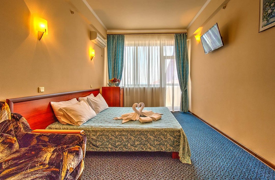 Стандартный однокомнатный номер общей площадью 22 кв.м с двуспальной или двумя односпальными кроватями, открытым балконом с прекрасным видом на Черное море – комфортабельный и выдержанный в элегантном стиле. Каждый номер идеален для гостей, которые хотели бы отдохнуть от суеты и насладиться морскими пейзажами. Дополнительное место-раскладное кресло. Парковки у Отеля нет!Услуги и удобства