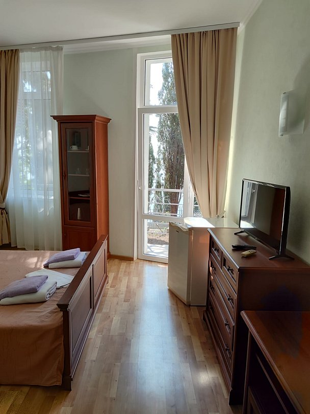 Стандартный номер на первом этаже, предназначен для размещения двух гостей на основных местах. Есть балкон с видом на парк.