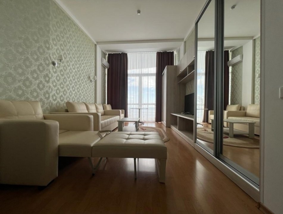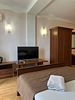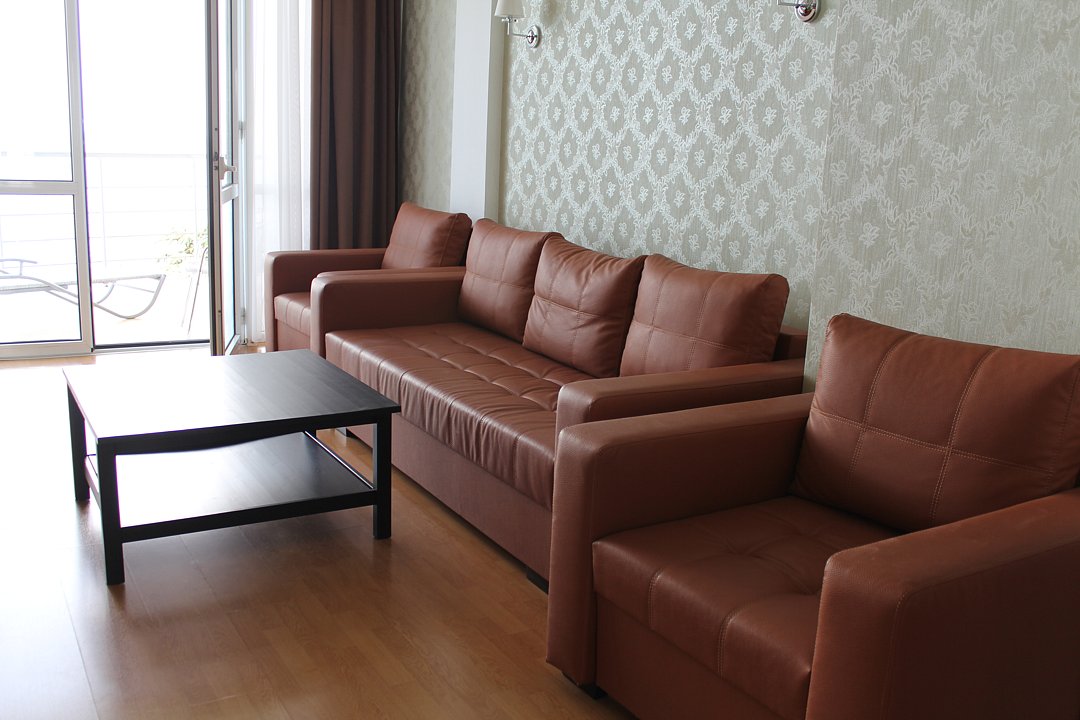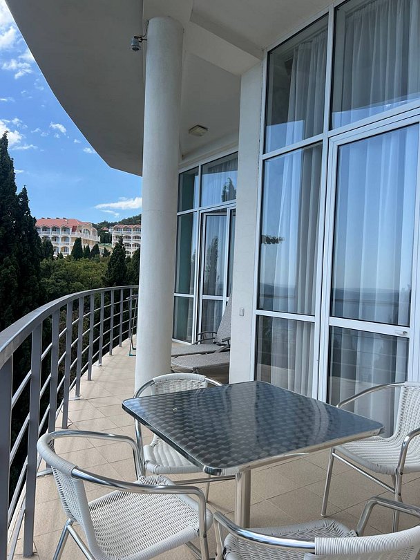 Просторный двухкомнатный номер с двумя санузлами, предназначен для размещения двух гостей на основных местах и двух — на дополнительных. Есть два балкона с видом на парк.