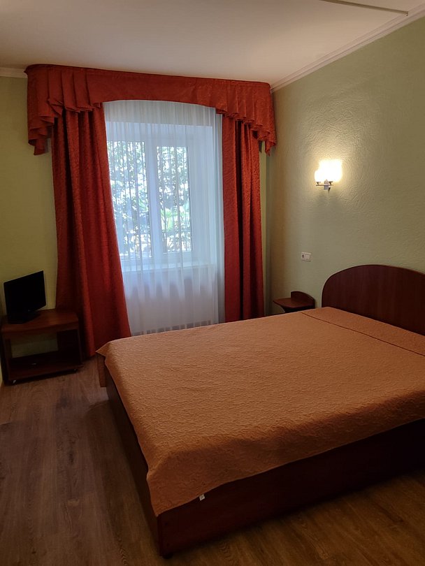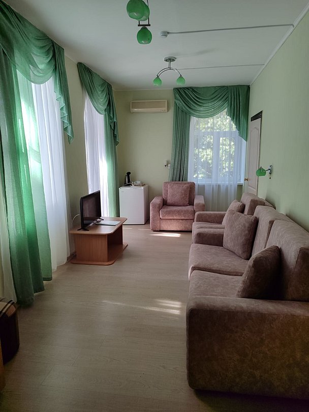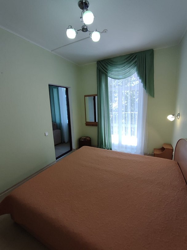 Стандартный двухкомнатный номер на первом этаже, предназначен для размещения двух гостей на основных местах и четырех — на дополнительных. Есть балкона с видом на парк.