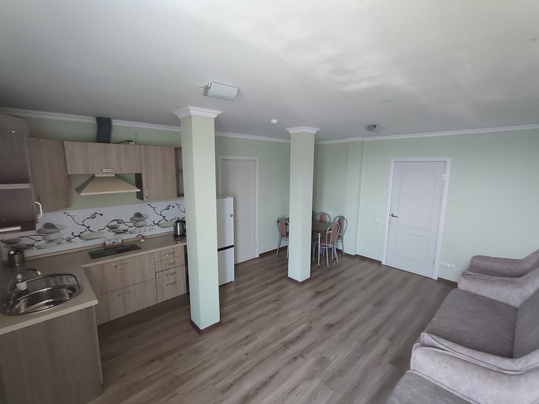 Двухкомнатный номер с кухней в новом корпусе с современными удобствами.