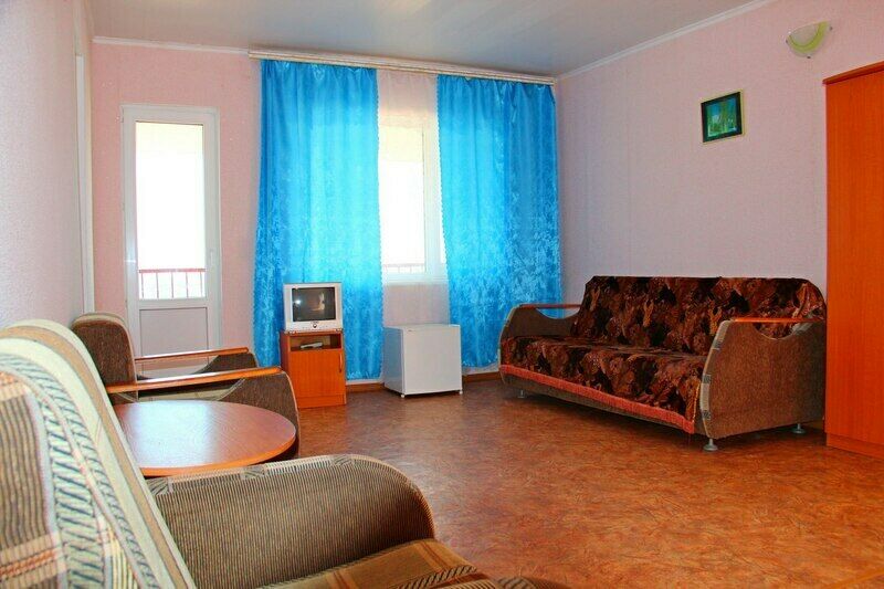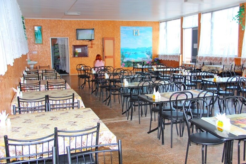 Семейный отдыхДостоинстваПриехали во второй раз. Все понравилось. В двухместном номере все есть: необходимая мебель, кондиционер, телевизор. В столовой кормят достойно. До моря метров 15. Пляж большой, не очень много людей, места есть, вода чистая. Можно воспользоваться шезлонгами. Предлагают еще прогулки на катамаранах.
