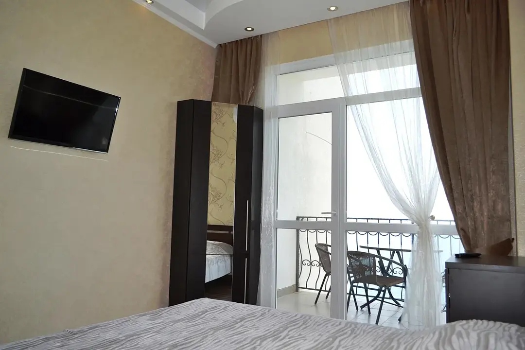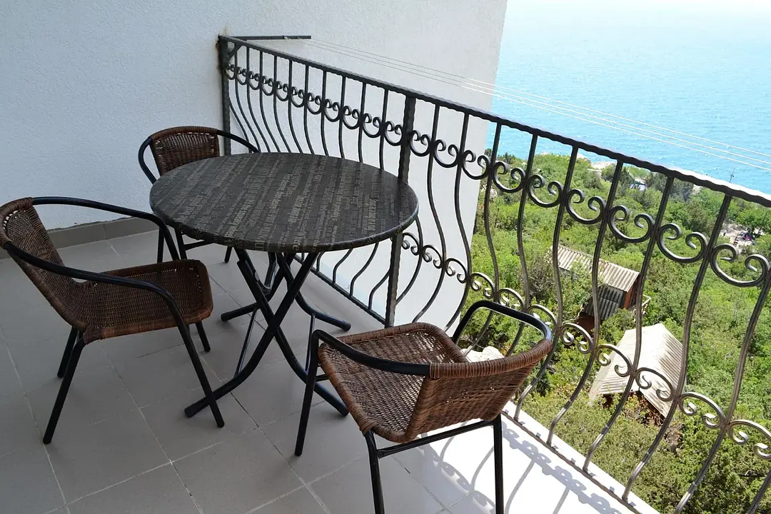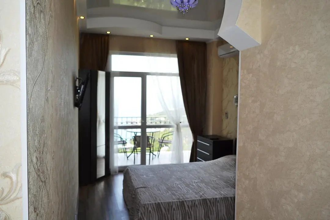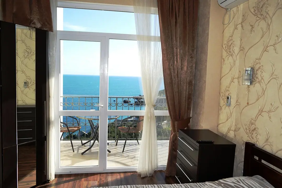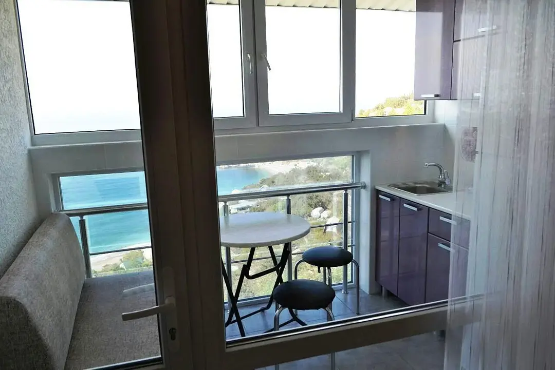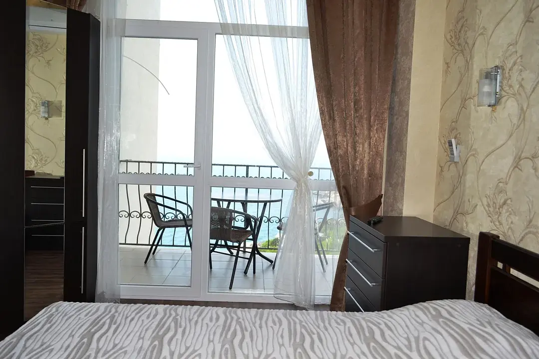 Номер находится на 6 этаже. Кухня находится в номере. Из балкона-террасы открывается великолепный вид на море и гору «Куш-Кая».