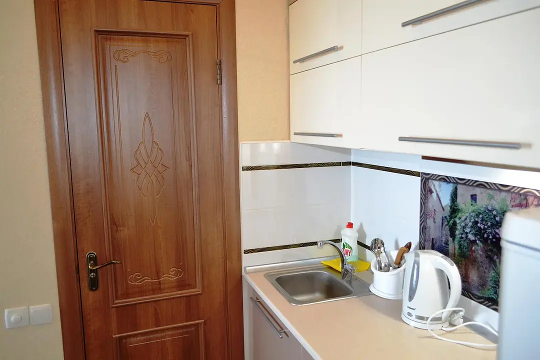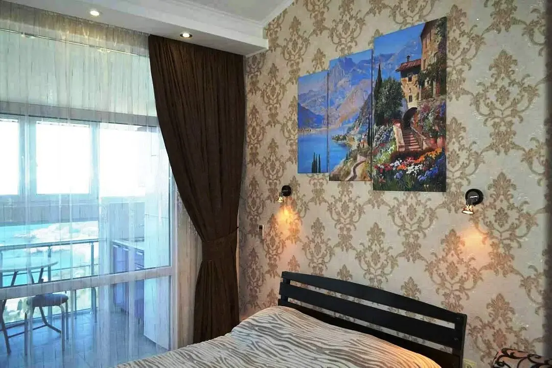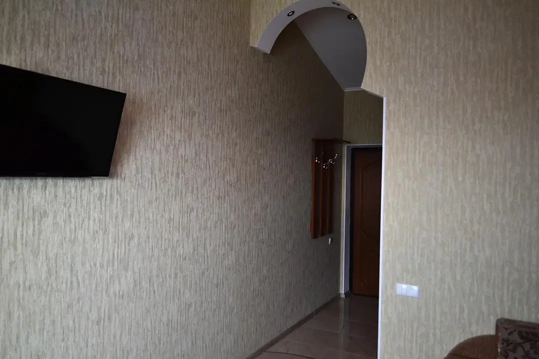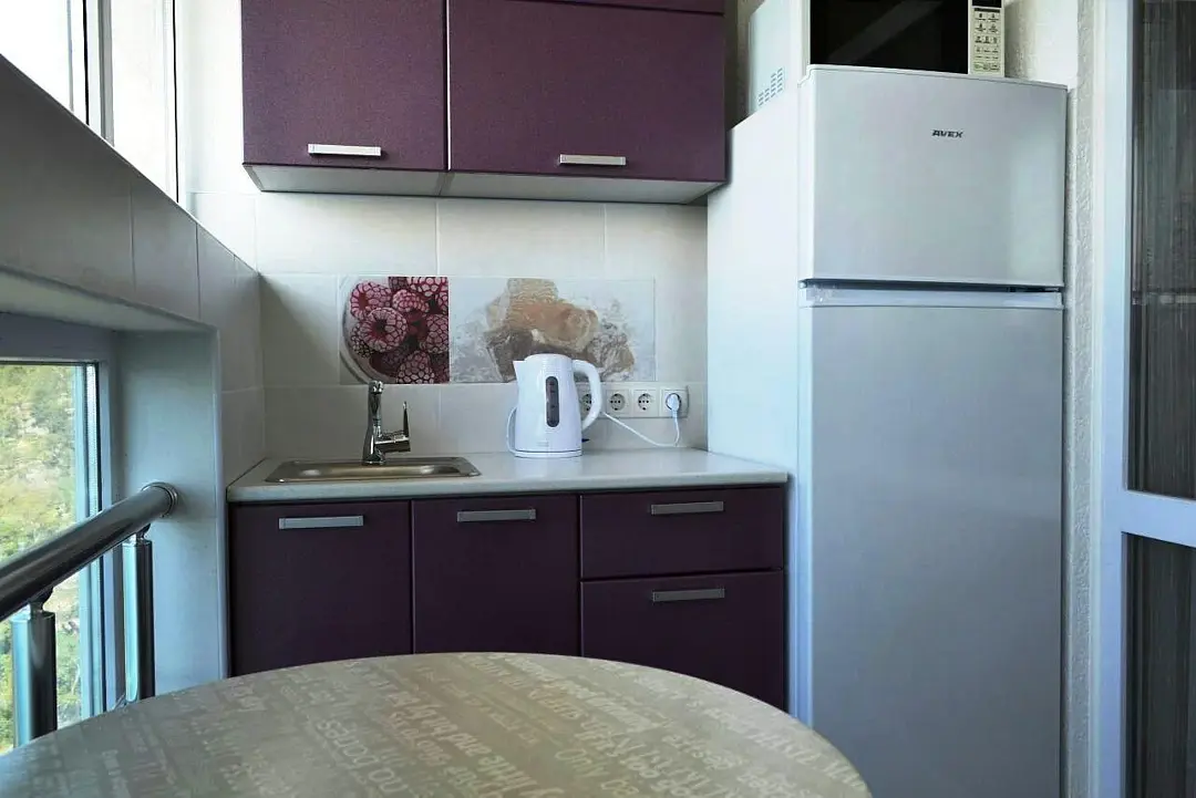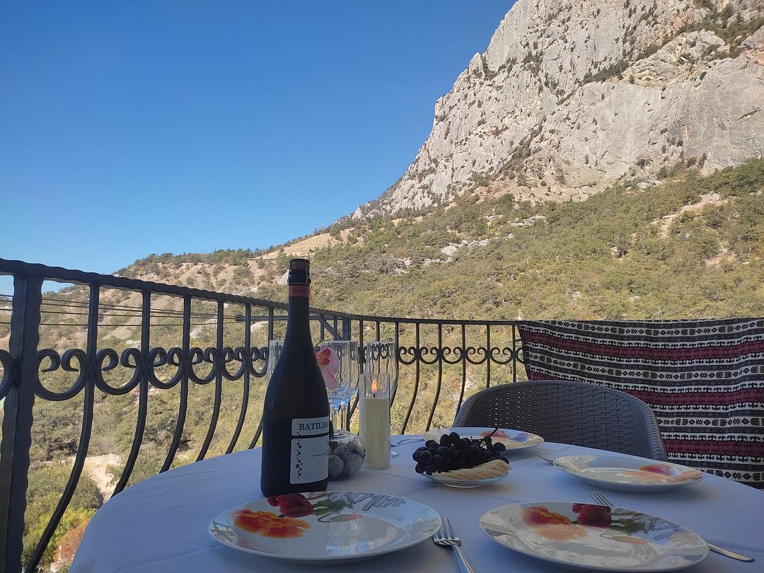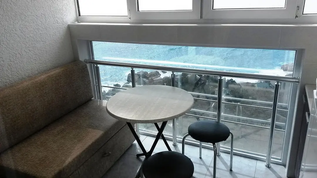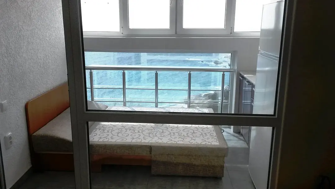 Номер находится на 6 этаже. Кухня находится в номере. Из балкона-террасы открывается великолепный вид на море и гору «Куш-Кая».