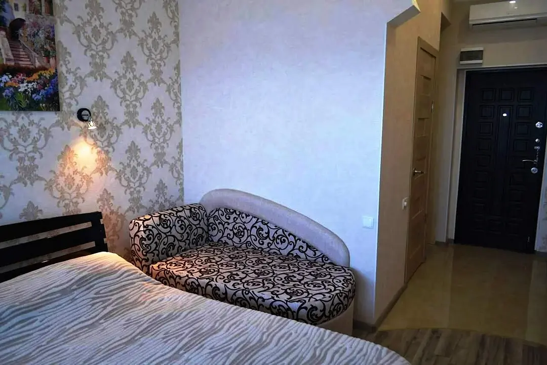 Одна двуспальная кровать, одна диван-кроватьВ гостиничном номере