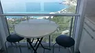 Номер находится на 8 этаже. Из номера открывается великолепный вид на море и горы. Кухня оборудована на балконе. Также на балконе имеется электрический роллет, защищающий от солнца.