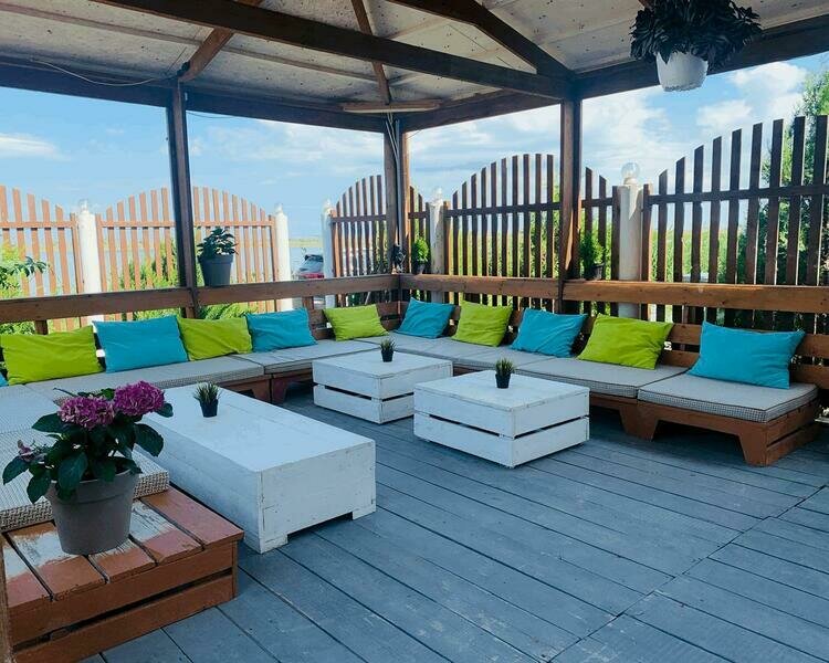 Современный двухэтажный гостевой дом Leo Grand на берегу моря, Крым, п. Поповка - лучшее место для комфортного отдыха. Отличное расположение! Близость к морю и лиману, широкие песчаные пляжи, удалённость от моря 150 м., отличное местно для семейного отдыха. На территории гостиницы обустроена зона для барбекю и беседки для отдыха, постояльцам доступна открытая автостоянка и беспроводной интернет, возле корпуса организована детская игровая площадка.